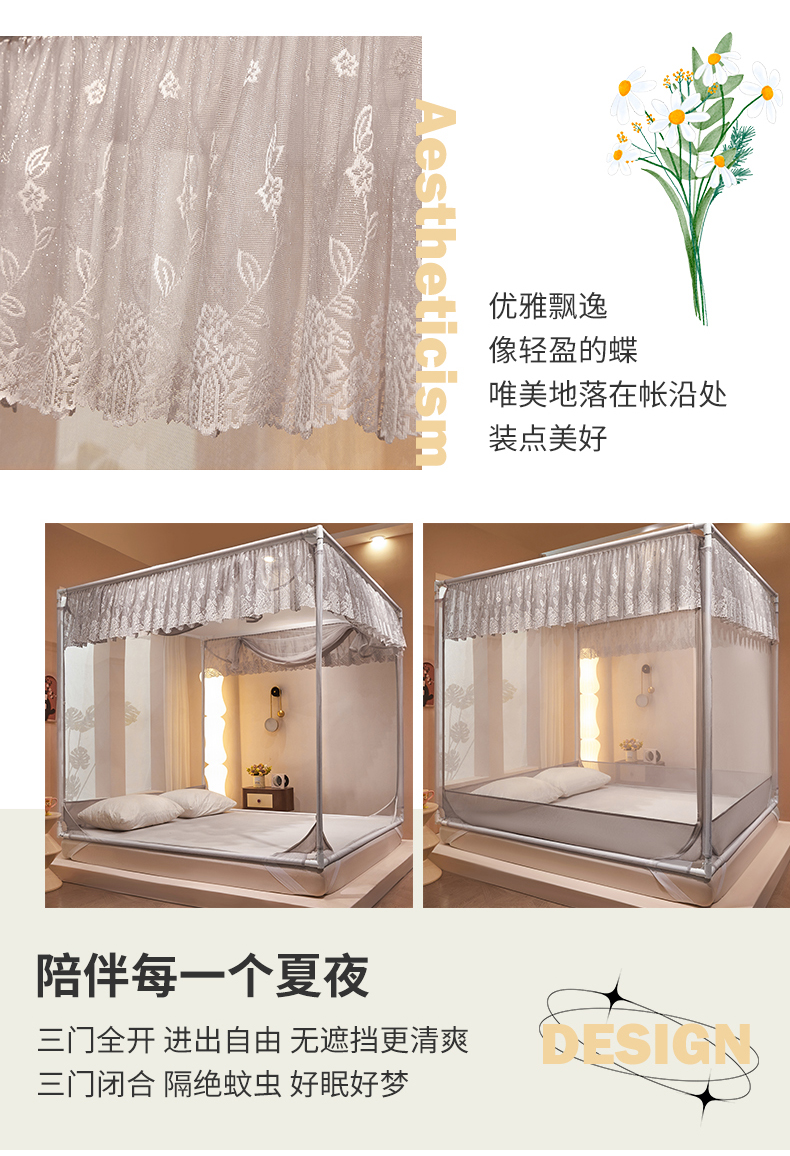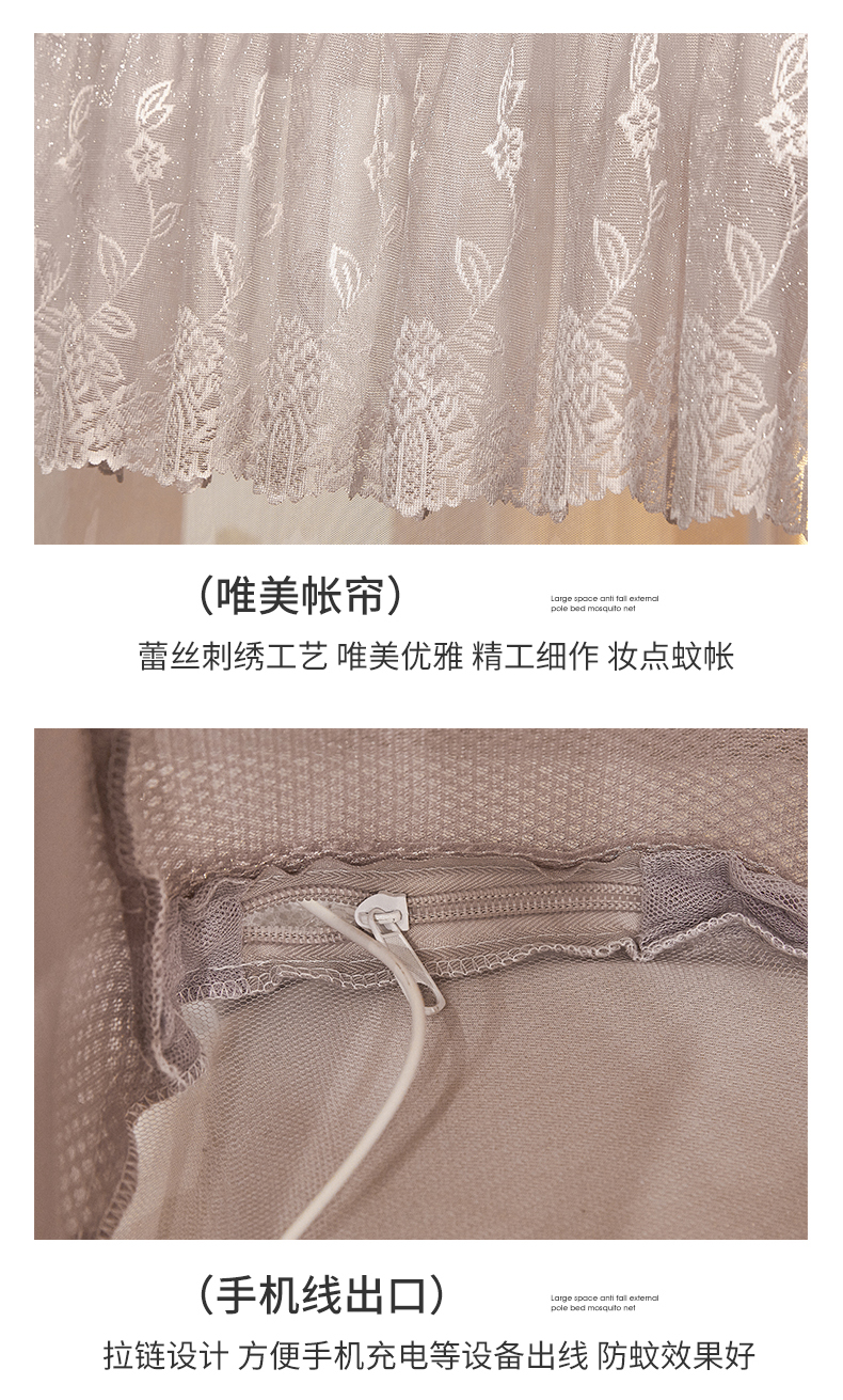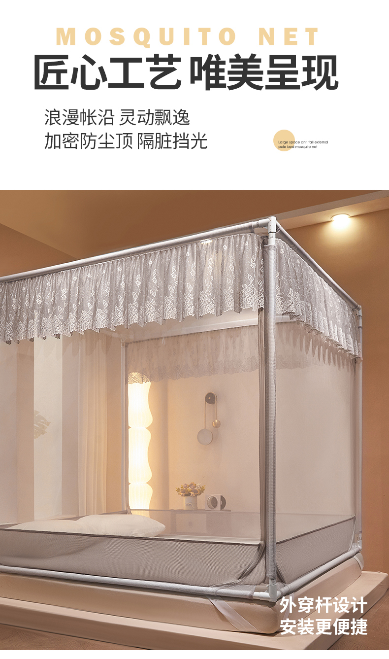 艺利轩蚊帐 2025新款大空间防摔外穿杆坐床蚊帐-繁花 繁花 月影灰