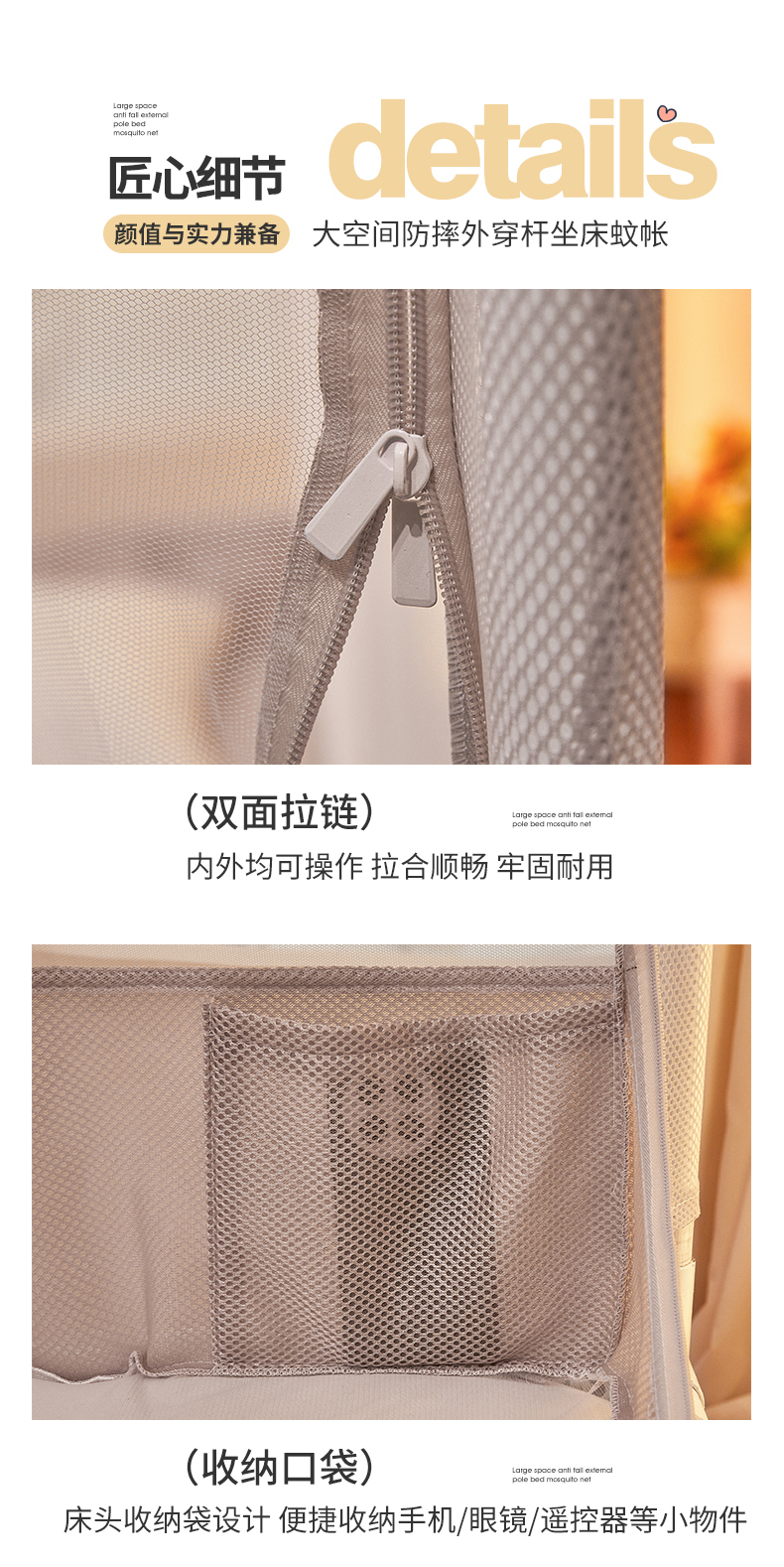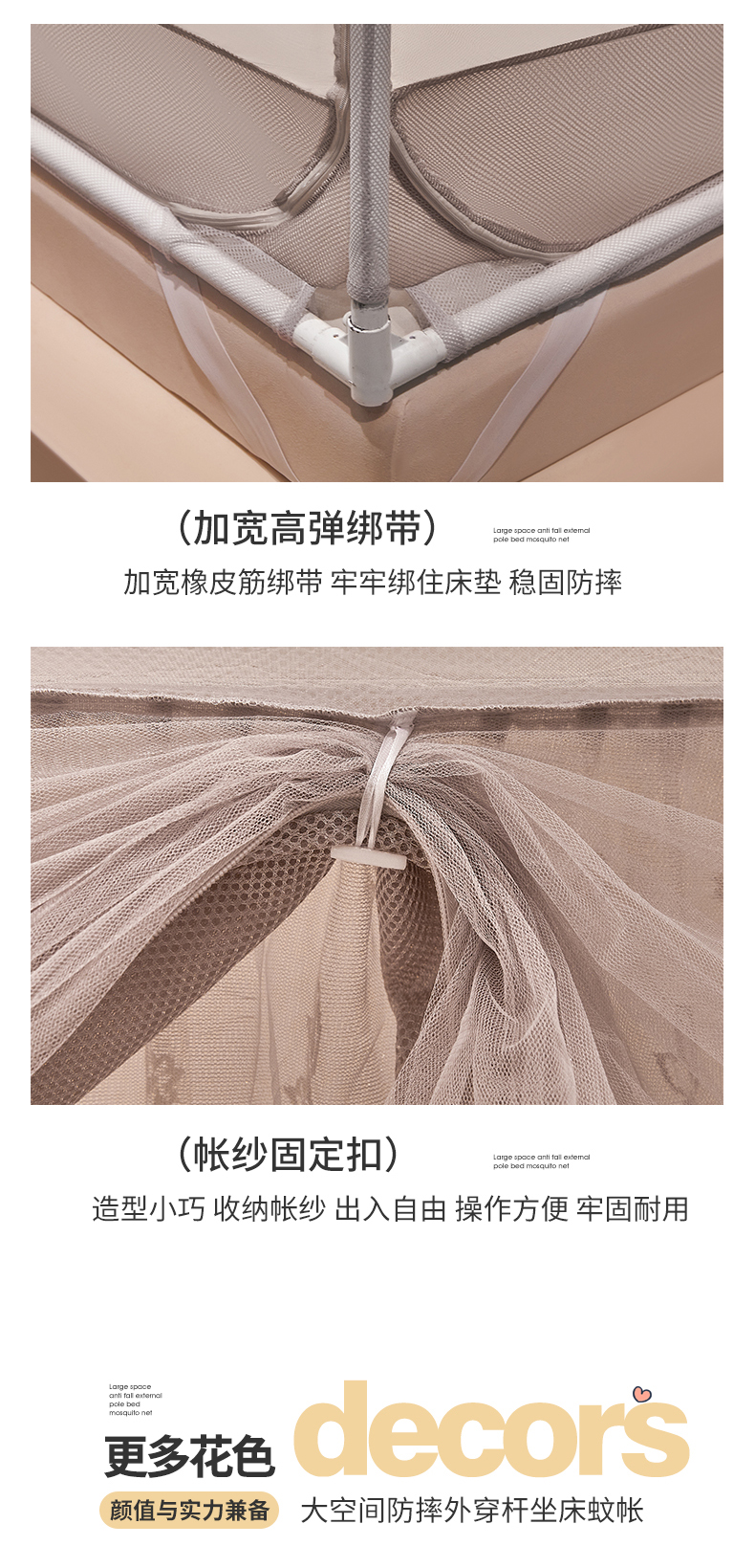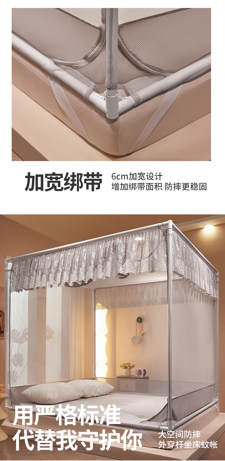 艺利轩蚊帐 2025新款大空间防摔外穿杆坐床蚊帐-繁花 繁花 月影灰