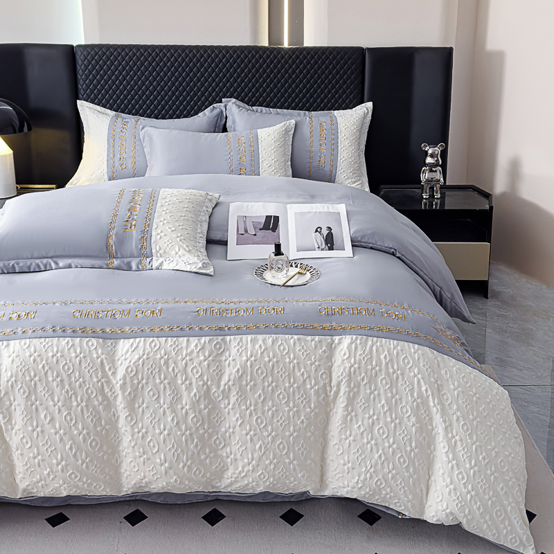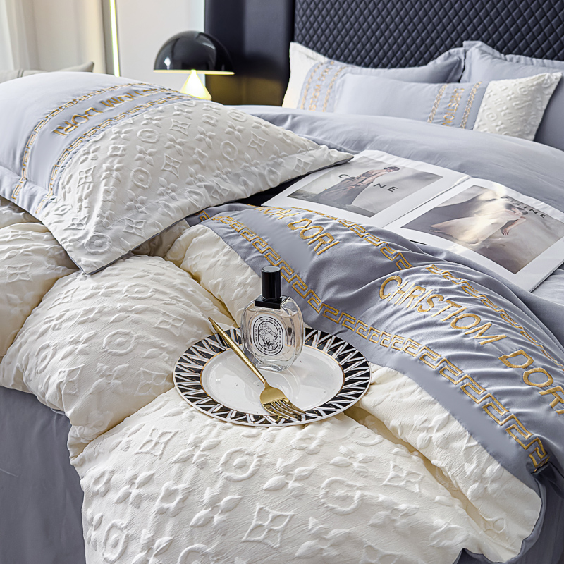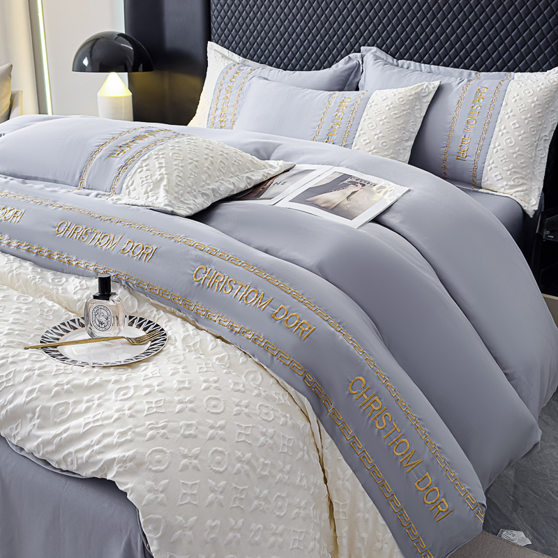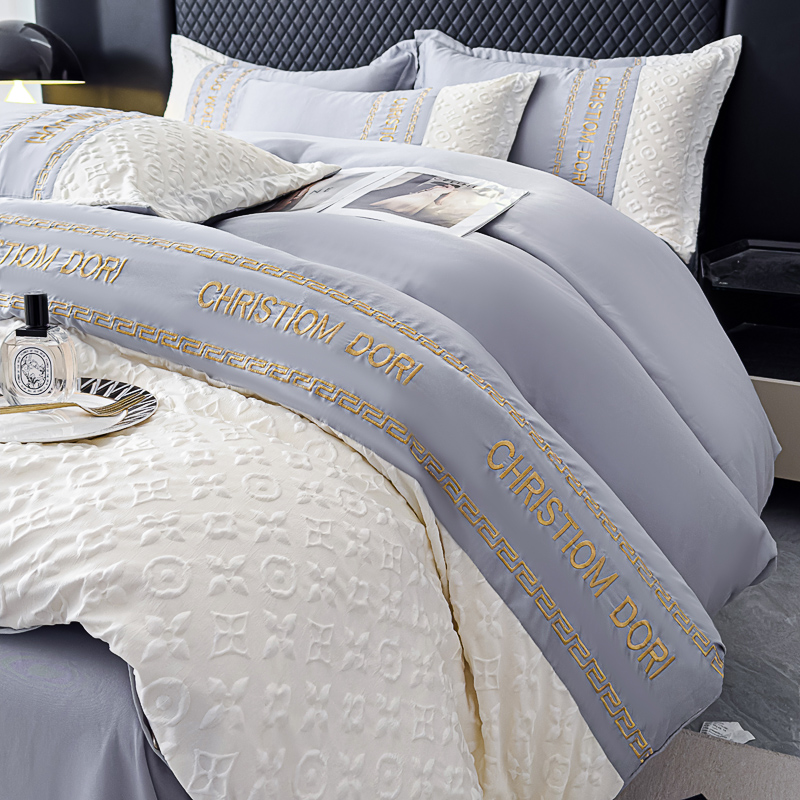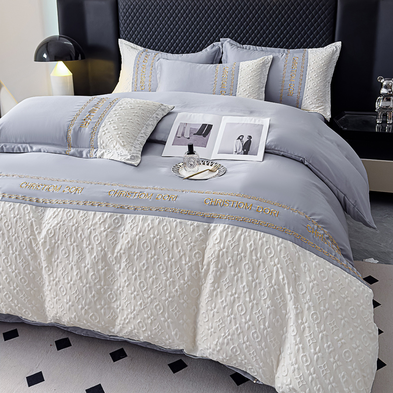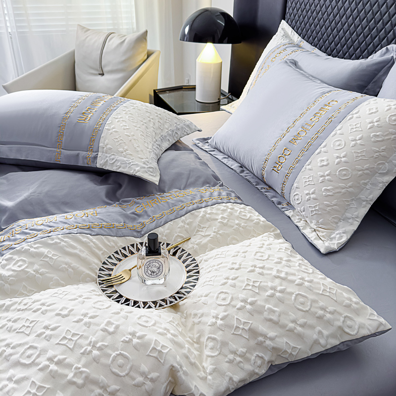 (买家秀爆款花型不断货)A类母婴级轻奢风浮雕水洗真丝天丝四件套兰精水洗天丝四件套高端莱赛尔天丝四件套 浮雕-玛瑙灰