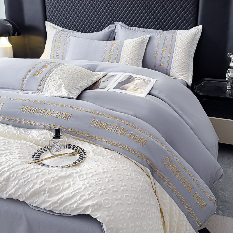 商品名称:(买家秀爆款花型不断货)A类母婴级轻奢风浮雕水洗真丝天丝四件套兰精水洗天丝四件套高端莱赛尔天丝四件套 浮雕-玛瑙灰