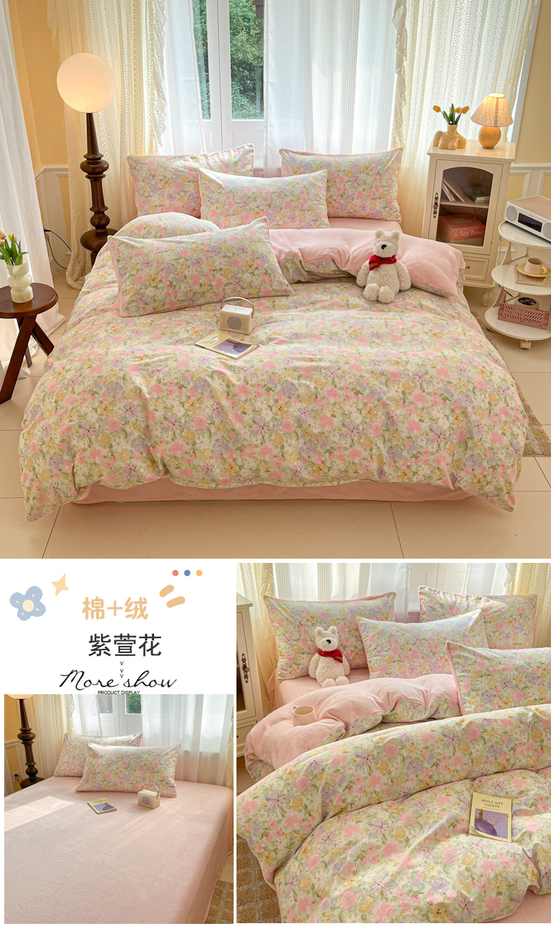 当前位置: 91家纺网 > 商品网购 > 床品套件 > 四件套 > 其它四件套 > 麦伦家居 2025秋冬新品多功能床品全棉+牛奶绒印花四件套 紫萱花