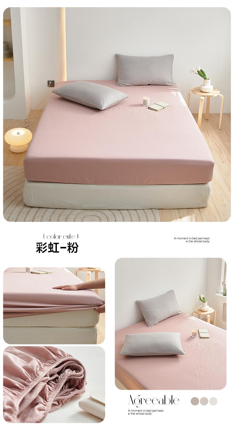 • 91家纺网 家纺一手货源 找家纺 2025春夏新款40支纯色彩虹糖系列单品床笠 彩虹-粉