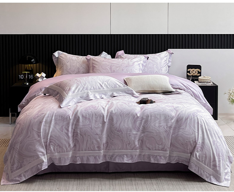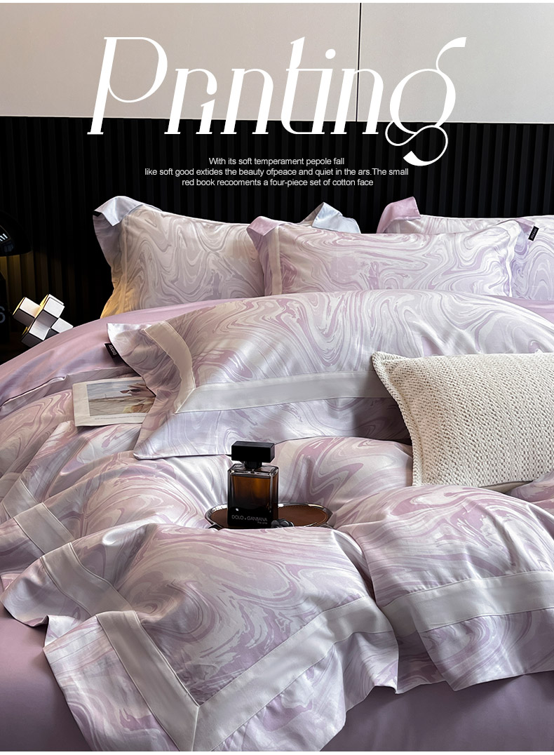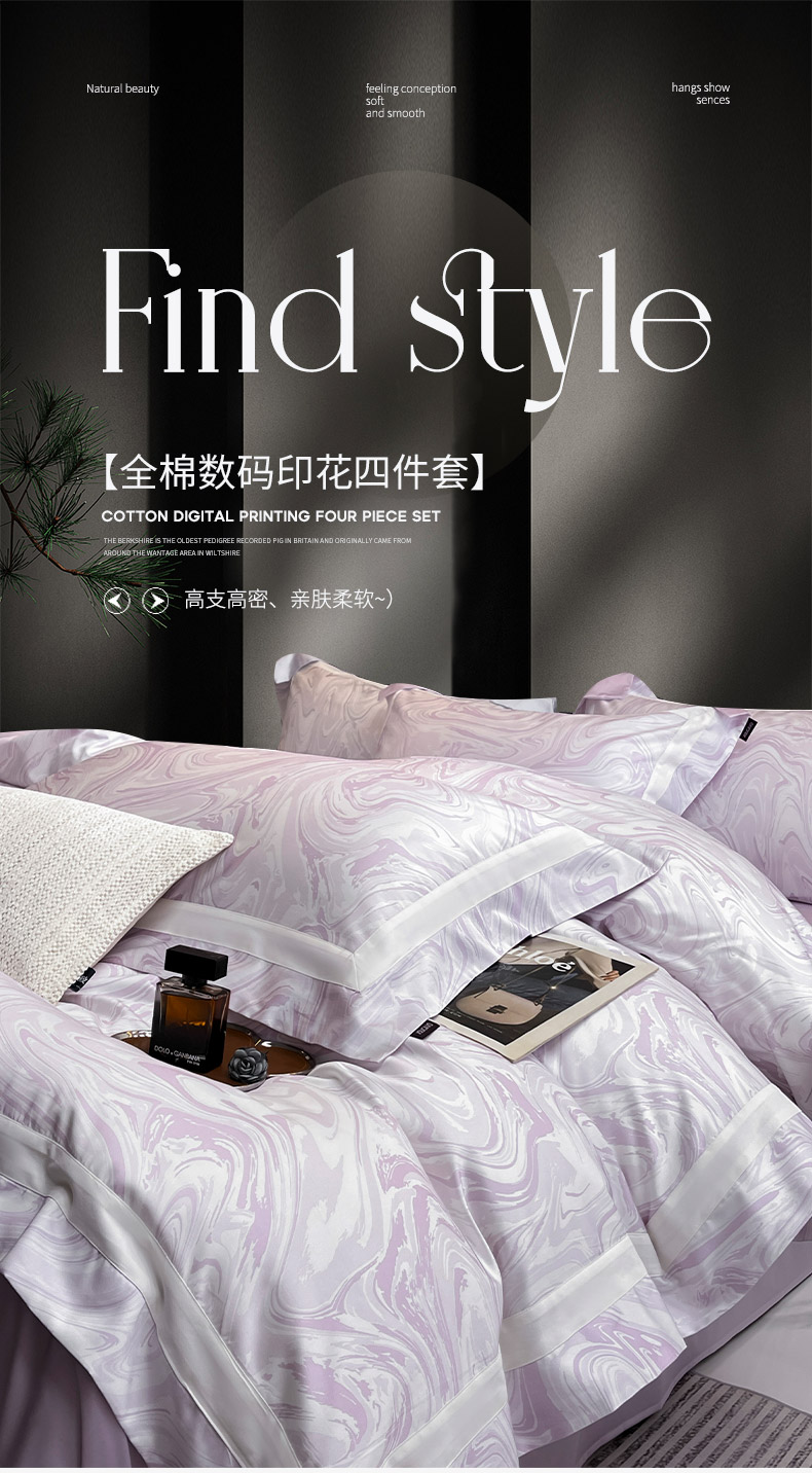 春夏爆款全棉数码印花四件套纯棉轻奢风长绒棉床单被套时尚床上用品浮影SM浮影-风信紫