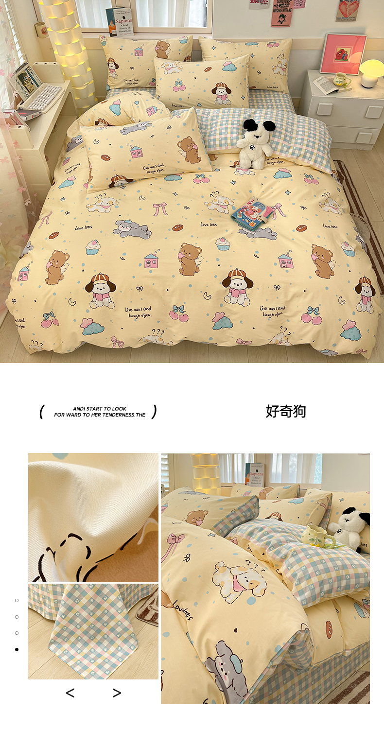 商品名称:2025新款全棉卡通小清新系列四件套 好奇狗