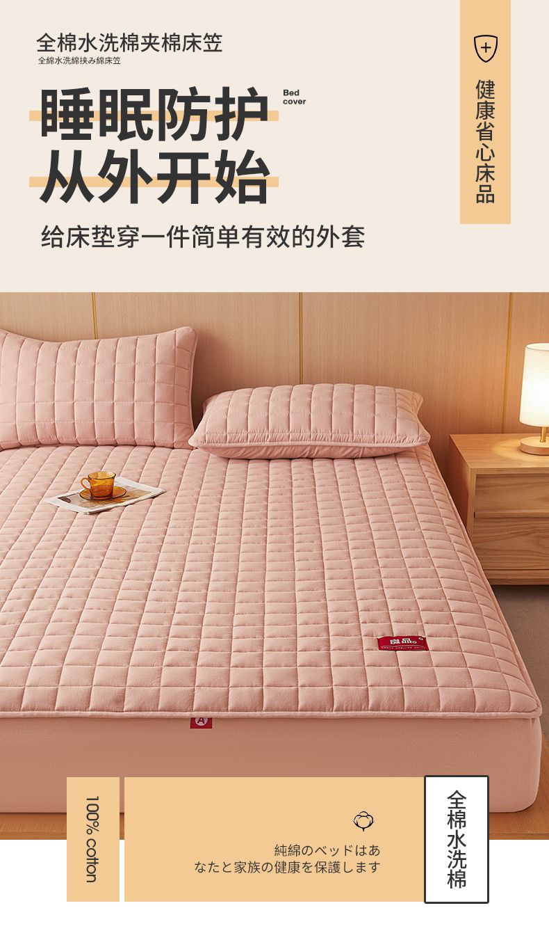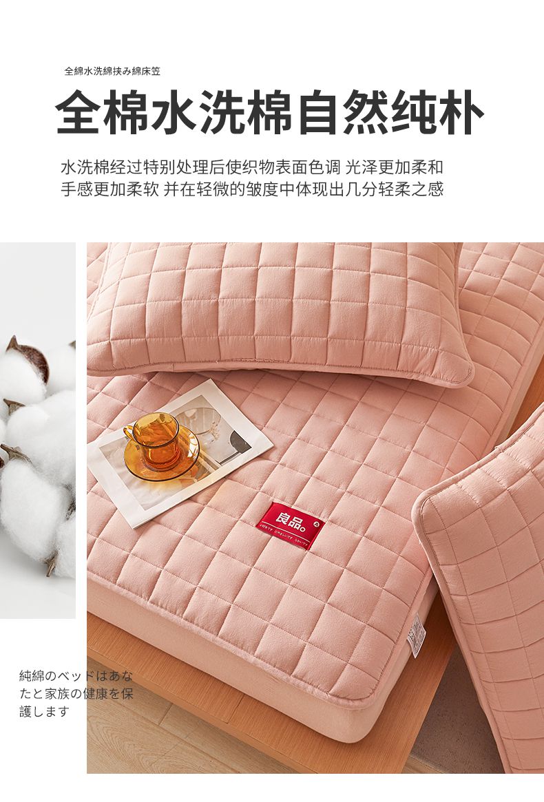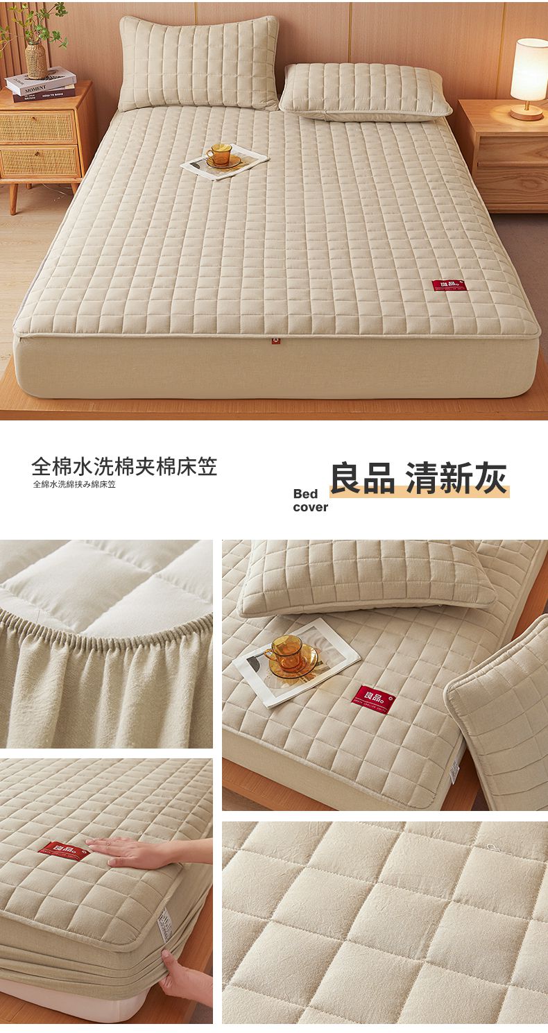 商品名称:3C 2025新款全棉水洗棉夹棉床笠-良品 良品 浅豆沙