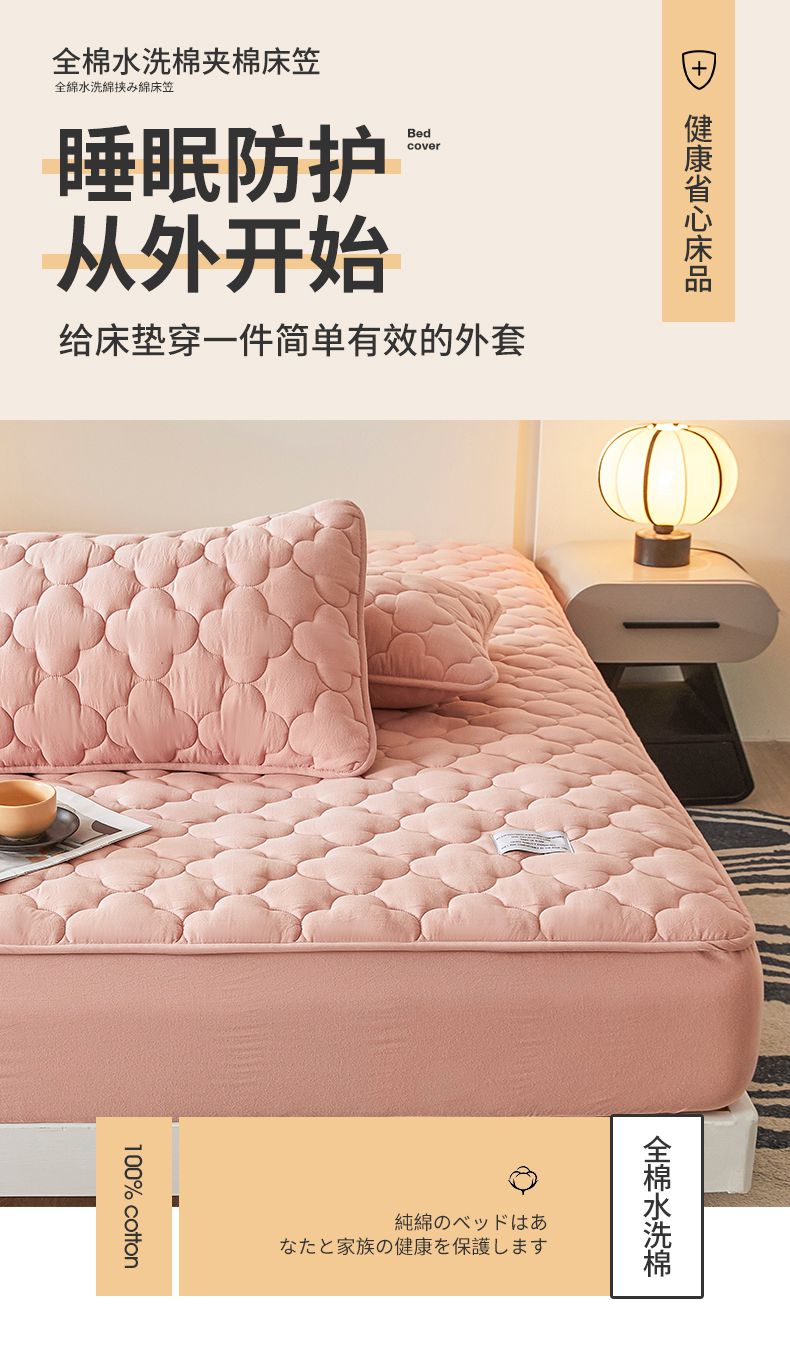 商品名称:3C 2025新款全棉水洗棉夹棉床笠-梦屿系列 梦屿 浅豆沙