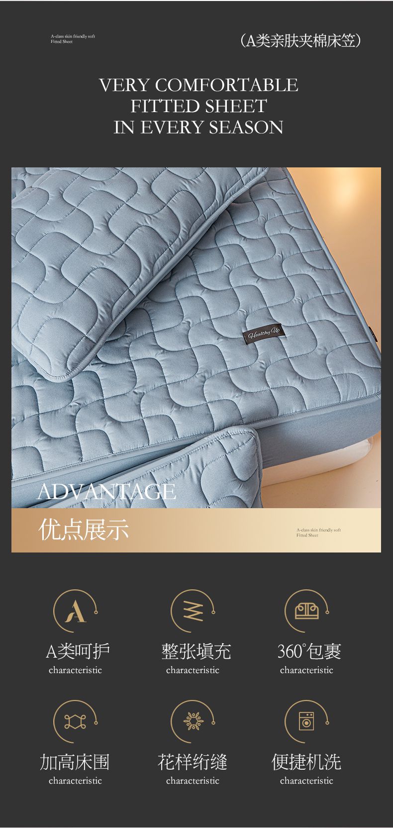 • 91家纺网 家纺一手货源 找家纺 3C 2025新款A类亲肤夹棉床笠-阡陌 阡陌 海洋蓝