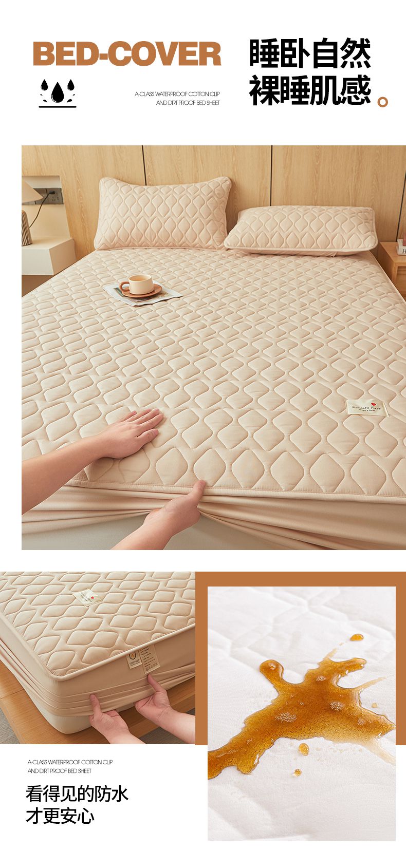 3C 2025新款A类菱形格防水隔脏床笠-卡诺 卡诺-暖杏