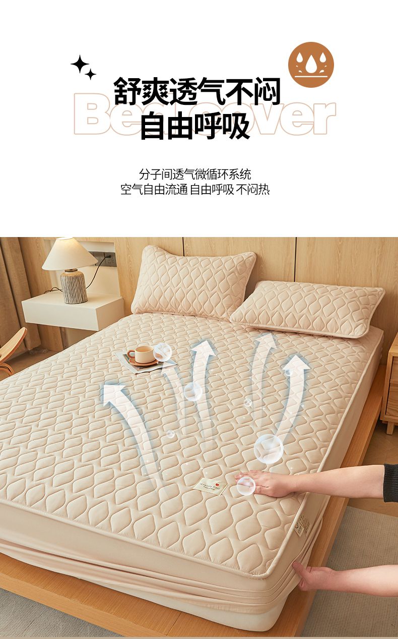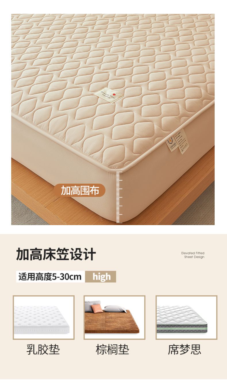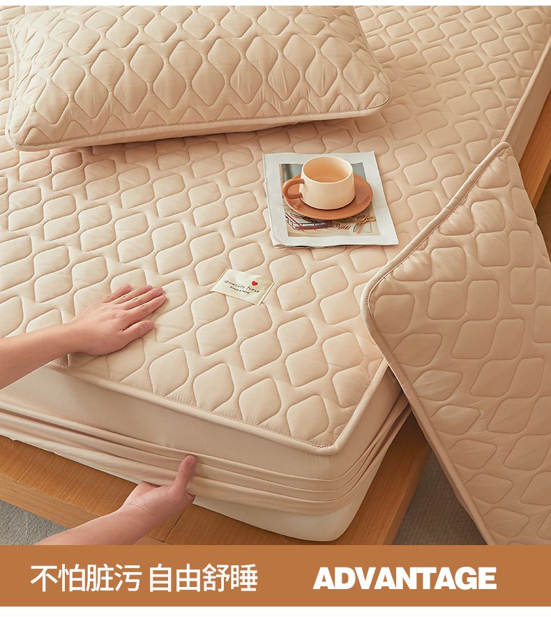 • 91家纺网 家纺一手货源 找家纺 3C 2025新款A类菱形格防水隔脏床笠-卡诺 卡诺-暖杏