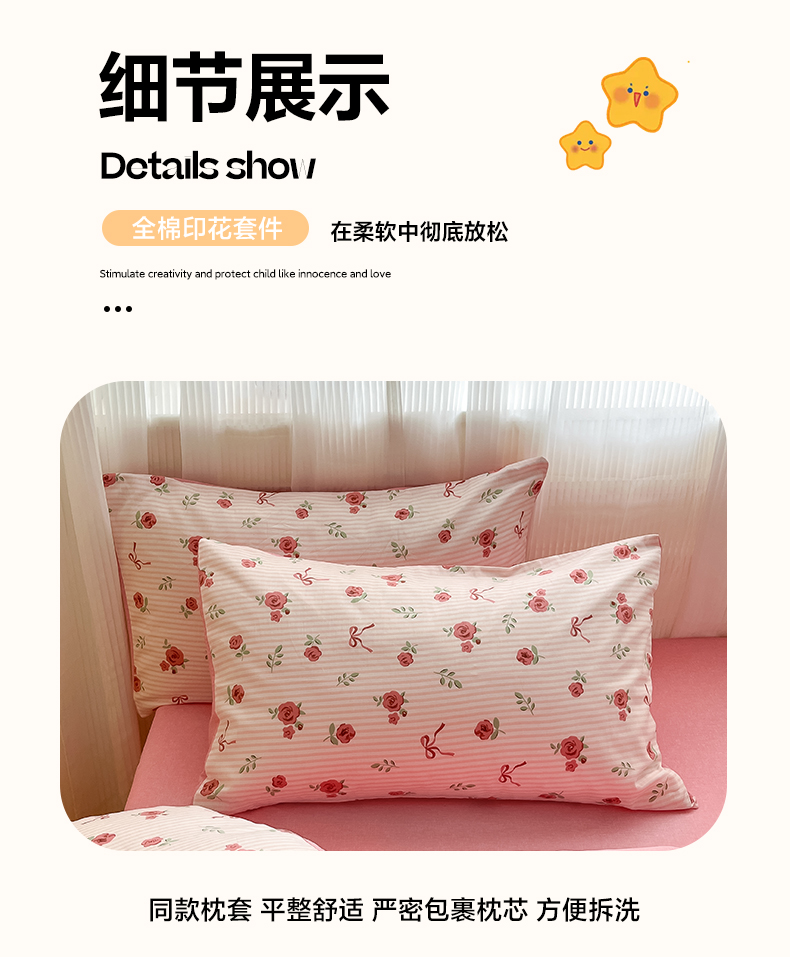 商品名称:雅居纺家纺 2025新款全棉小清新四件套 粉色烂漫