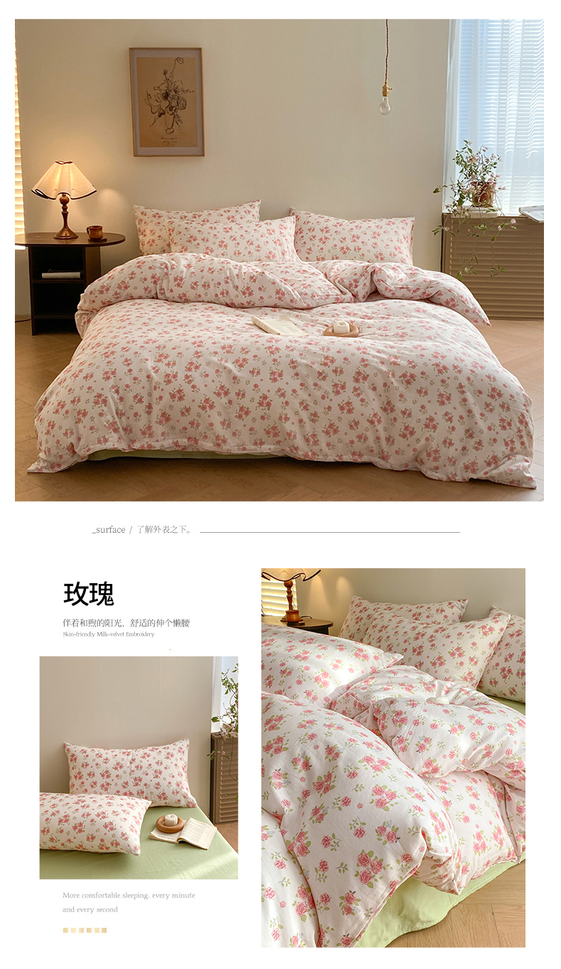 当前位置: 91家纺网 > 商品网购 > 床品套件 > 四件套 > 全棉普通四件套 > 2025新款A类母婴级有氧全棉纯棉双层纱纯棉印花四件套 场景一 玫瑰