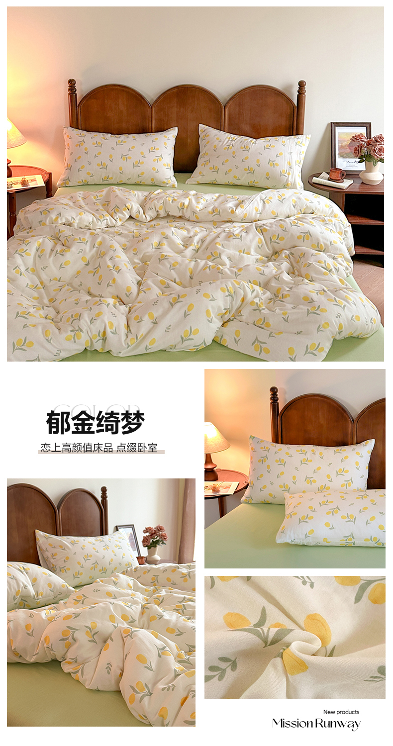 当前位置: 91家纺网 > 商品网购 > 床品套件 > 四件套 > 全棉普通四件套 > 2025新款A类母婴级有氧全棉纯棉双层纱纯棉印花四件套 场景二 郁金绮梦
