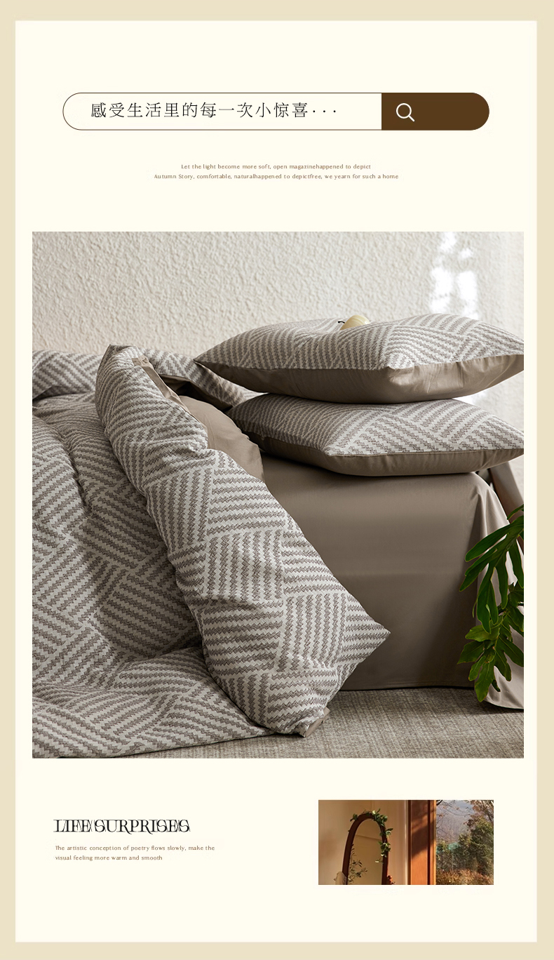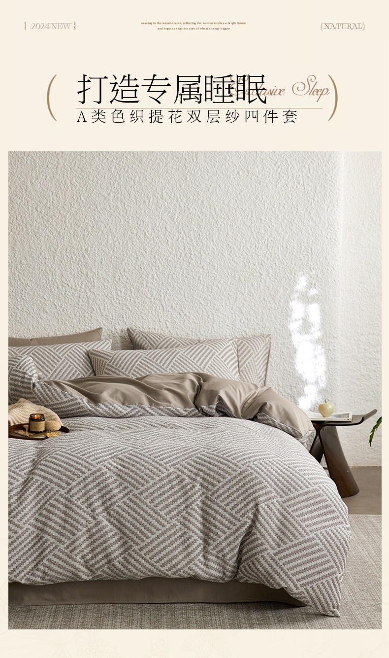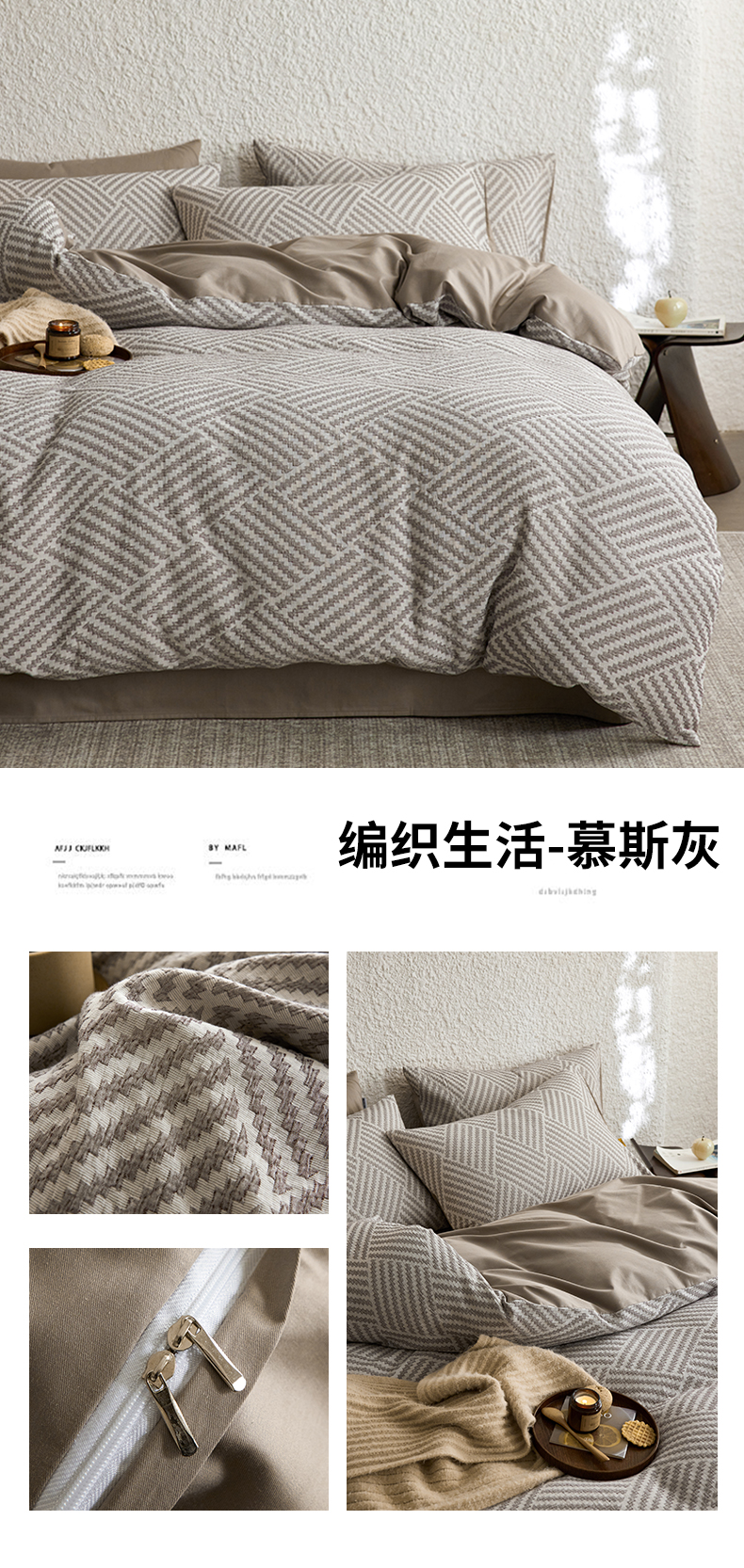 当前位置: 91家纺网 > 商品网购 > 床品套件 > 四件套 > 凯磊家纺 2025新款色织提花双层纱四件套 编织生活-慕斯灰