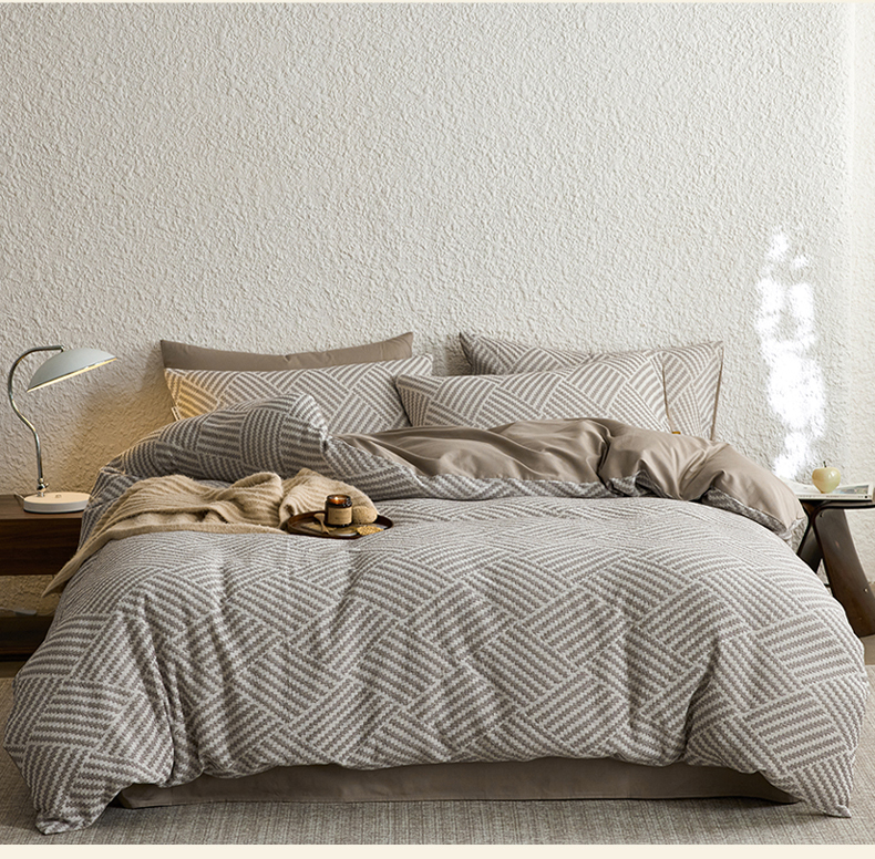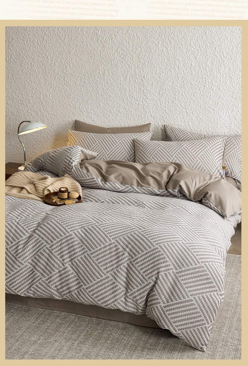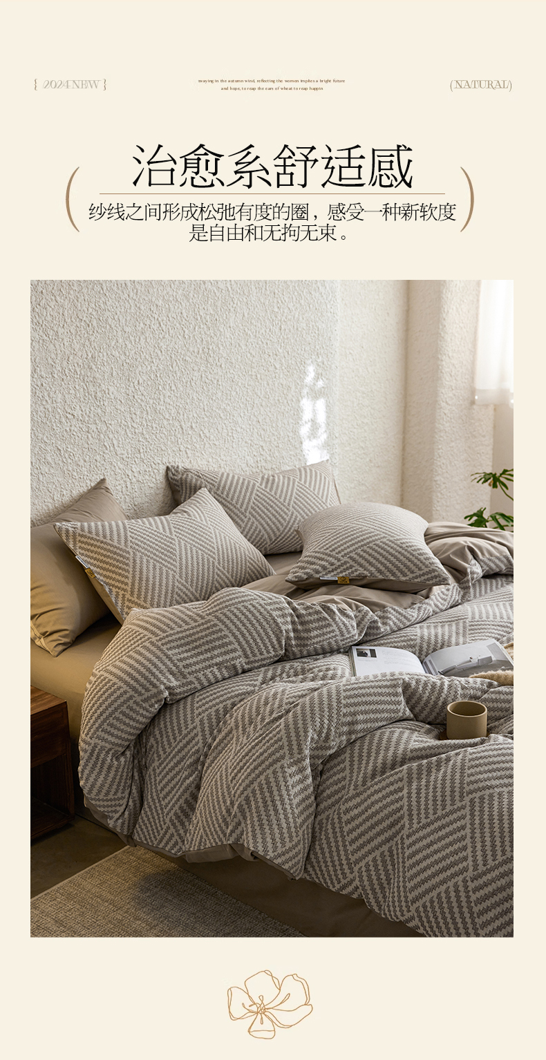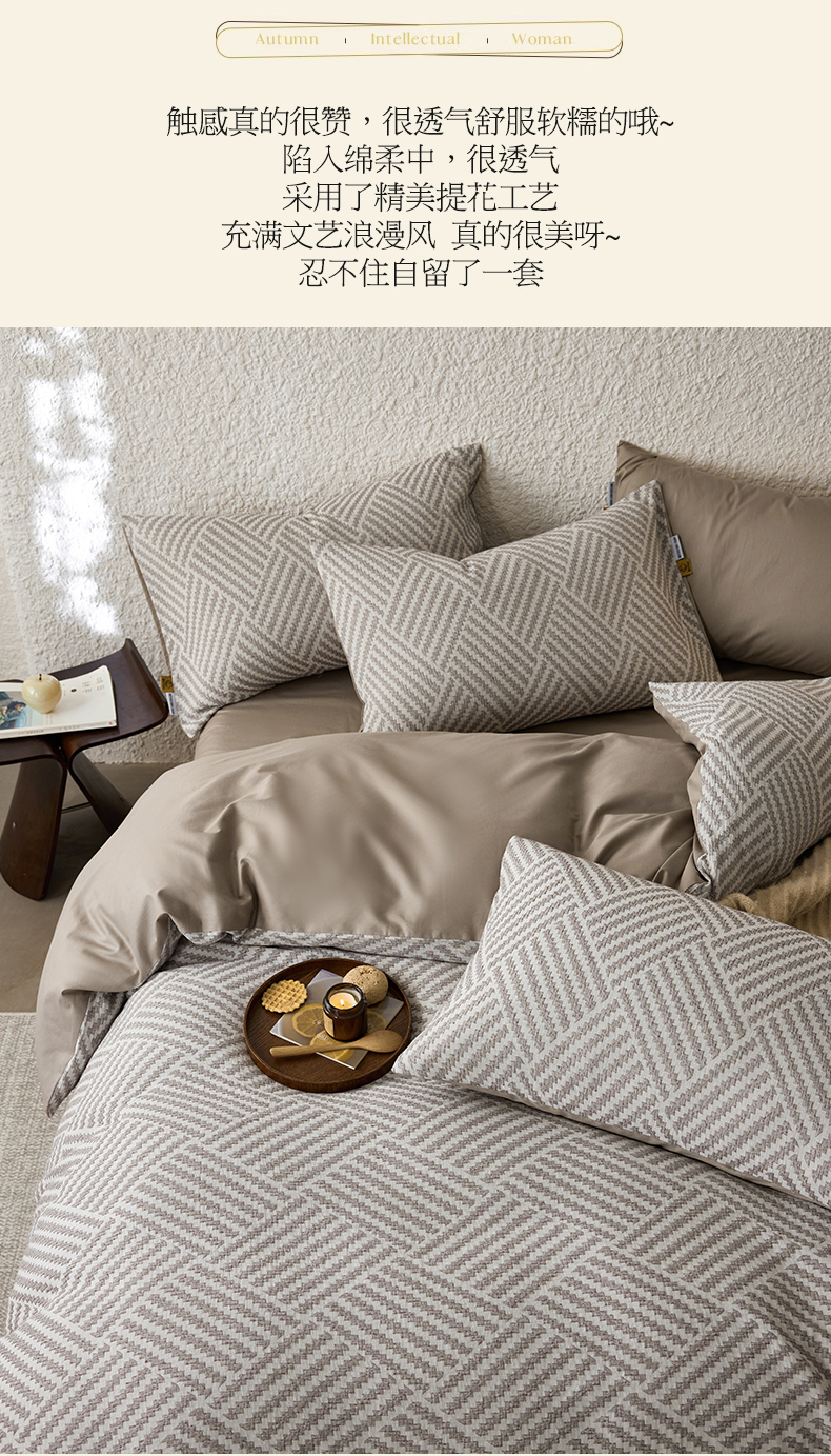 当前位置: 91家纺网 > 商品网购 > 床品套件 > 四件套 > 凯磊家纺 2025新款色织提花双层纱四件套 编织生活-慕斯灰