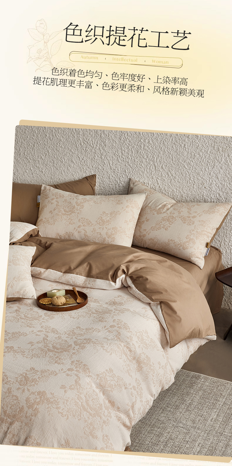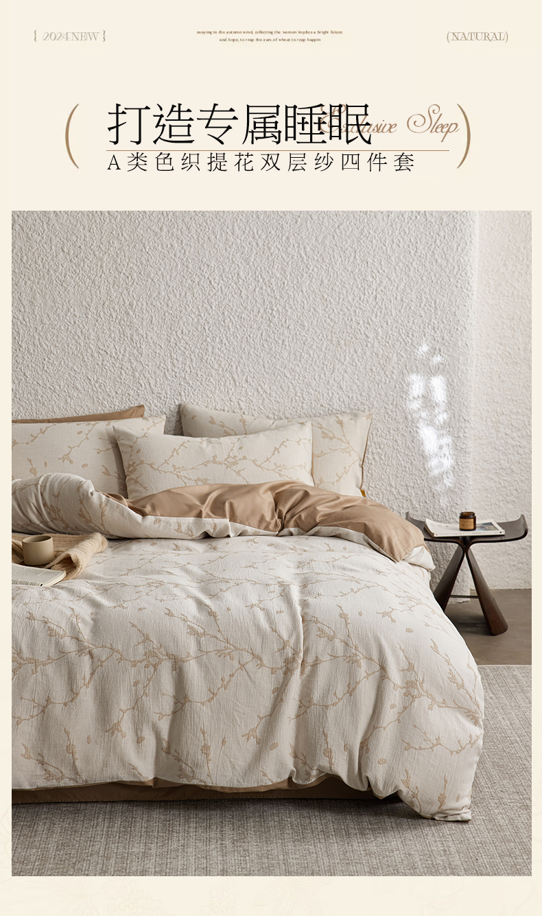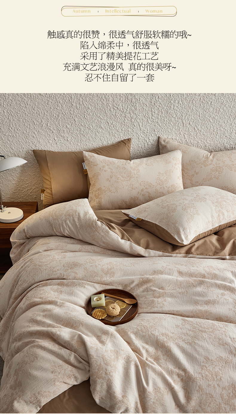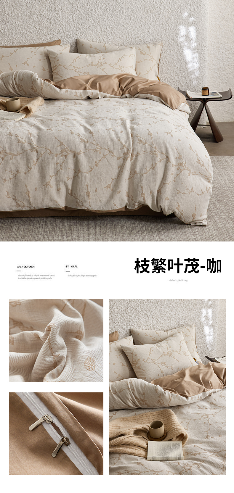 当前位置: 91家纺网 > 商品网购 > 床品套件 > 四件套 > 凯磊家纺 2025新款色织提花双层纱四件套 枝繁叶茂-咖