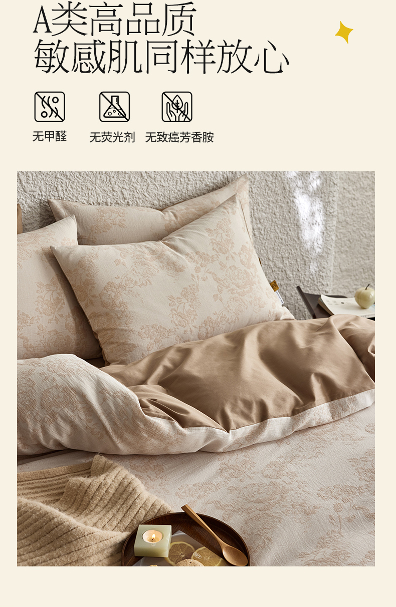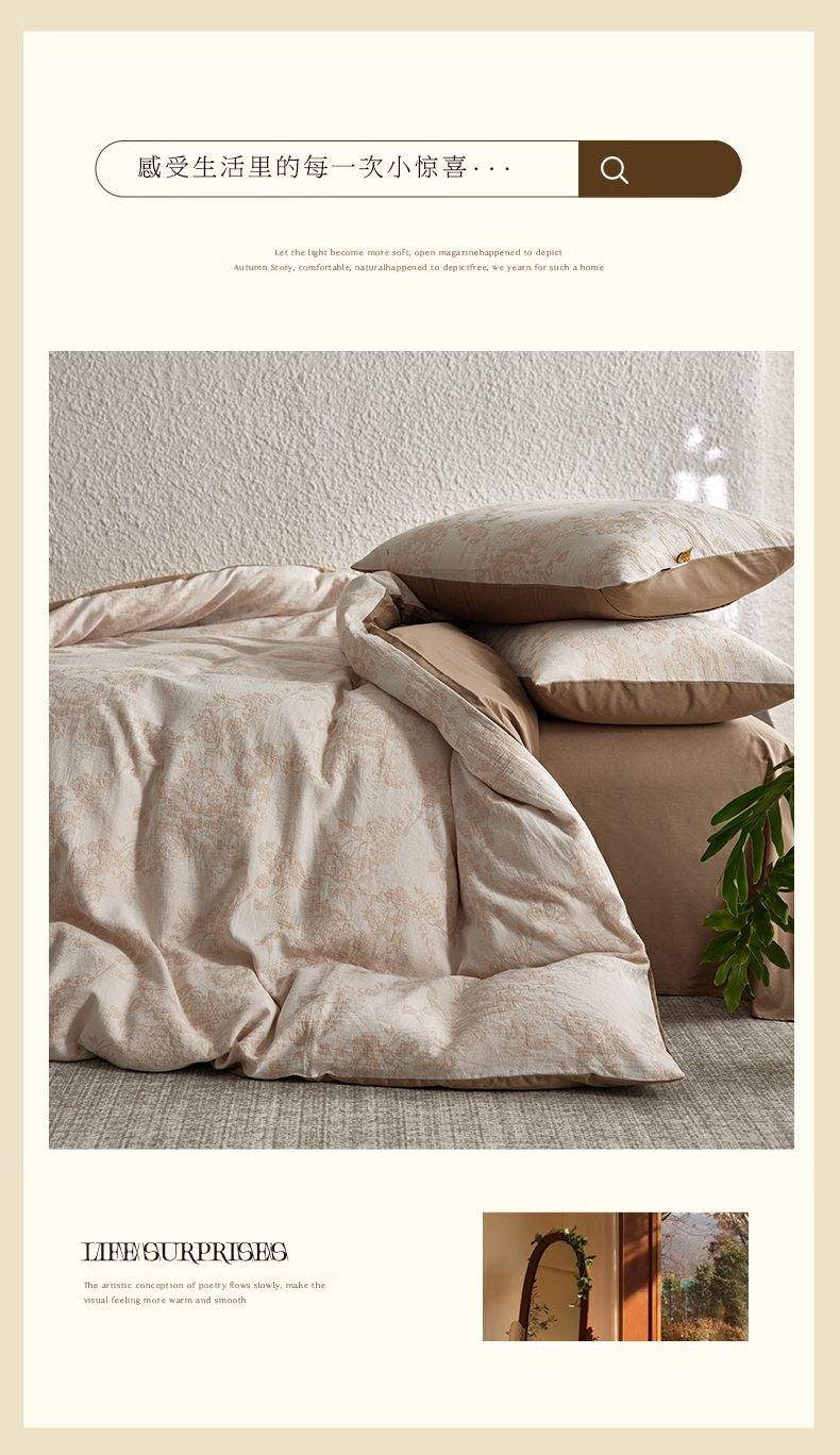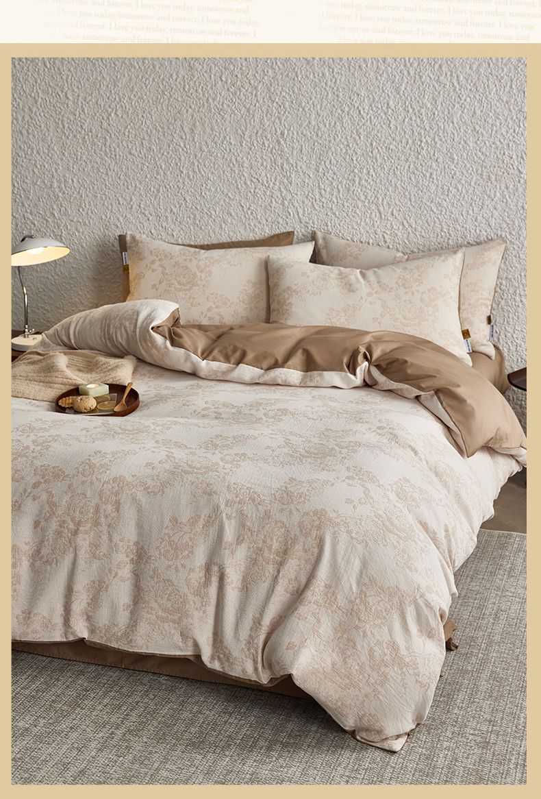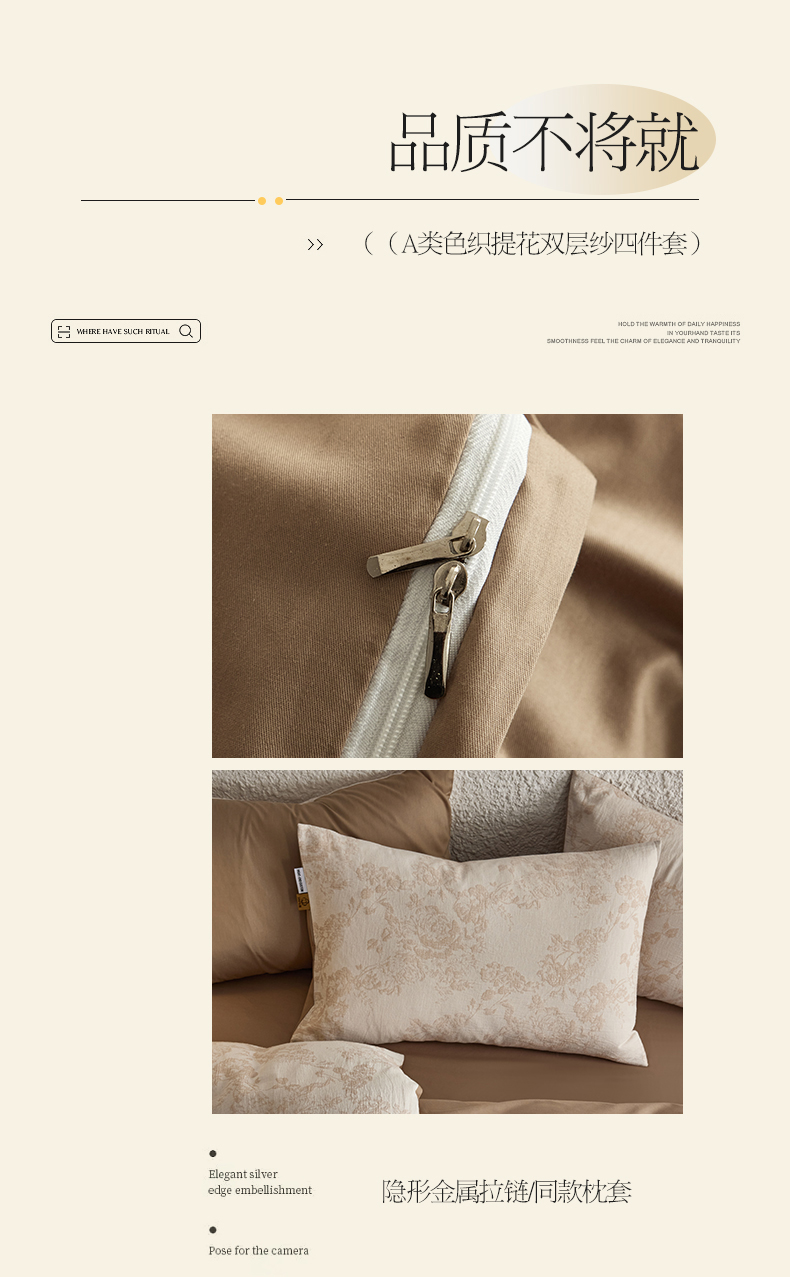 当前位置: 91家纺网 > 商品网购 > 床品套件 > 四件套 > 凯磊家纺 2025新款色织提花双层纱四件套 枝繁叶茂-咖