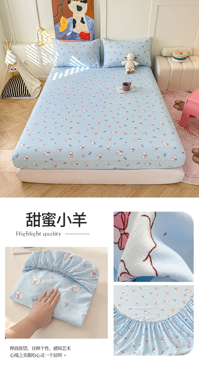 • 91家纺网 家纺一手货源 找家纺 温眠 2025新款A类亲肤水洗棉可爱卡通印花床笠 甜蜜小羊