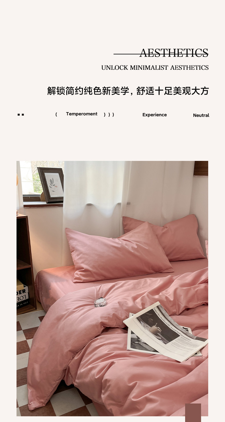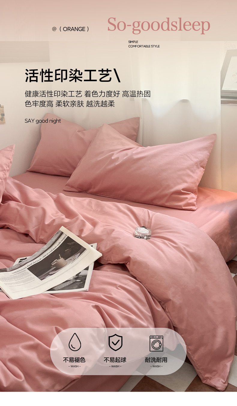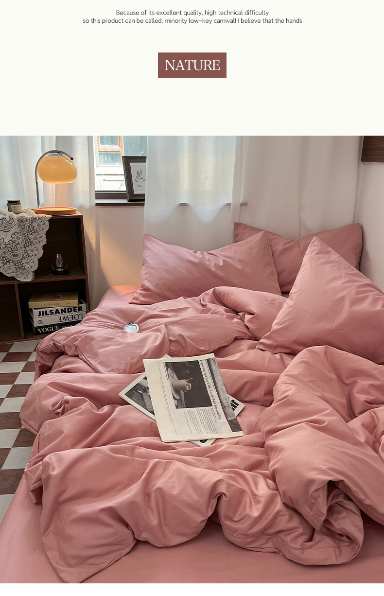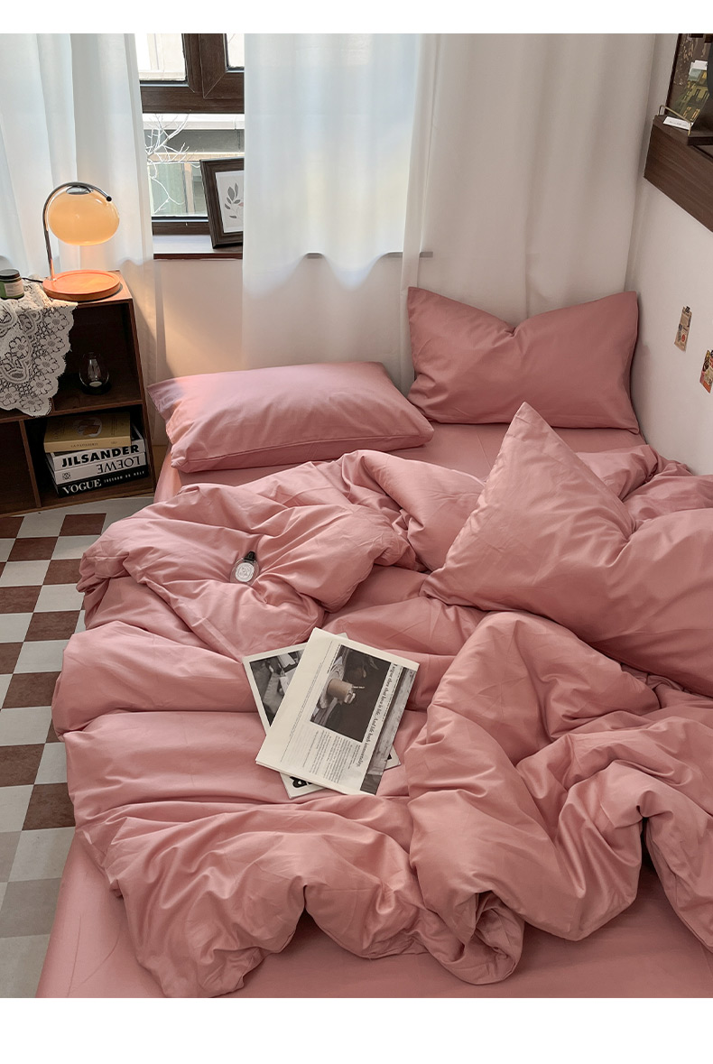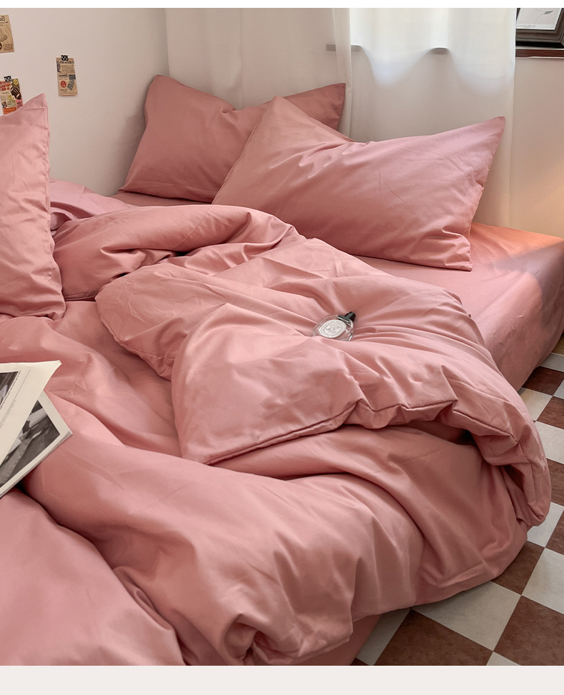 商品名称:2025新款40支长绒棉ins美拉德色系纯色全棉四件套床笠极简三件套纯棉四件套系列--四件套 瑞红