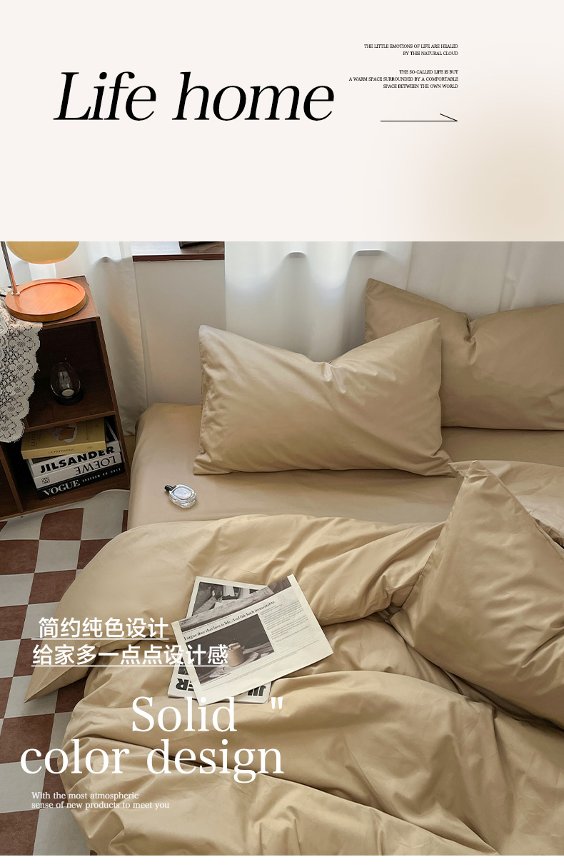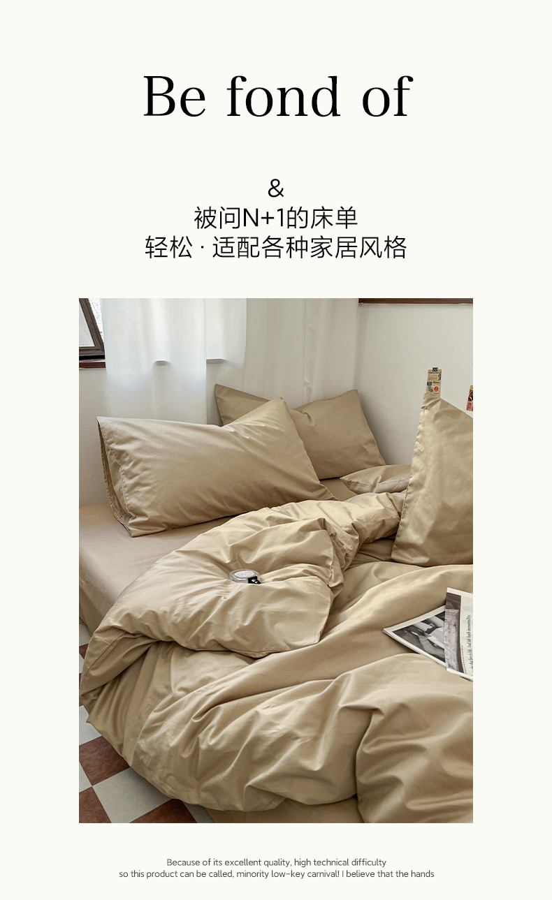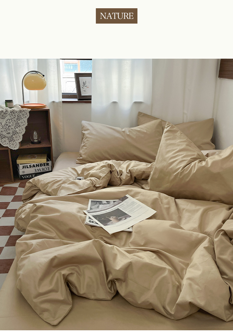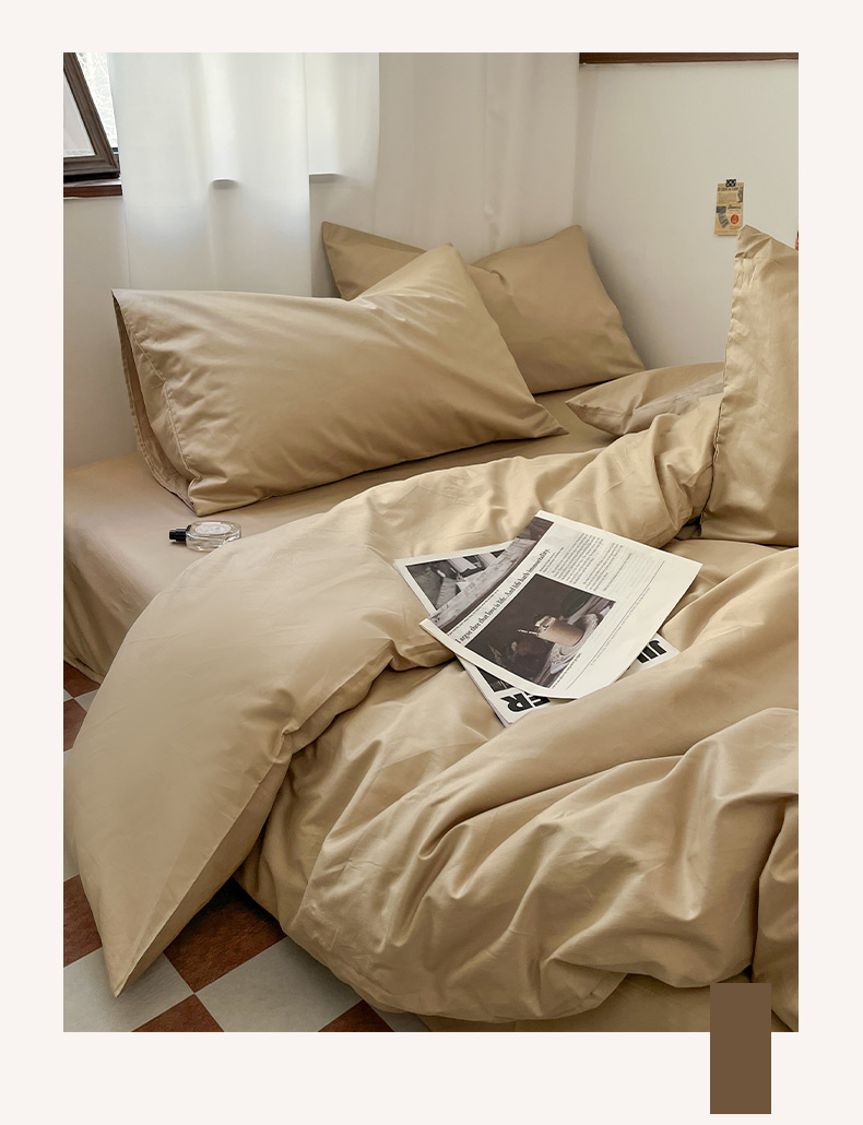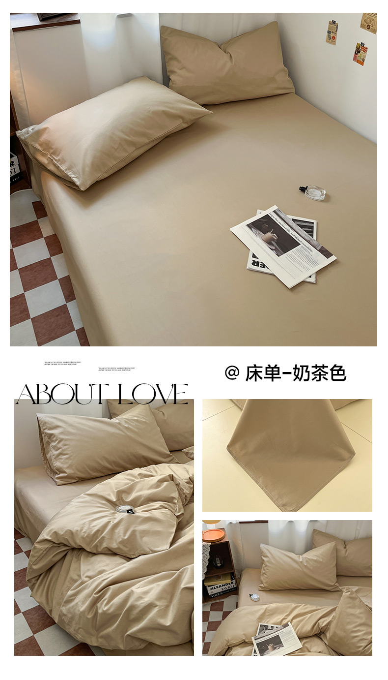 2025新款40长绒棉ins美拉德色系纯色全棉单品四件套床笠四件套系列--单床单 奶茶色