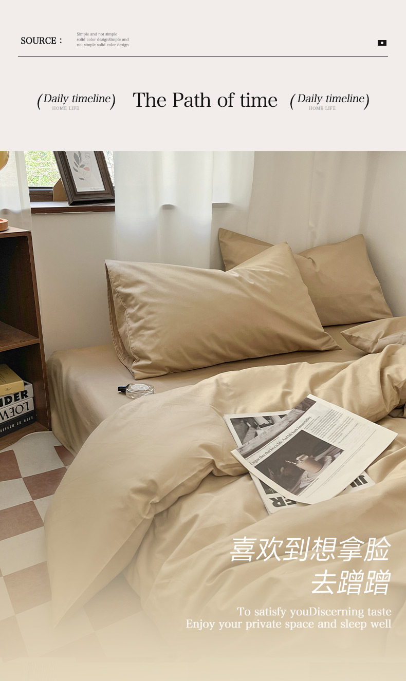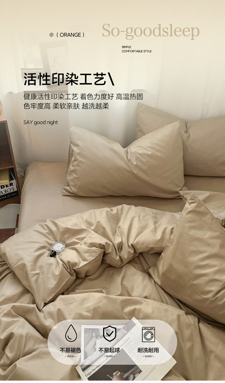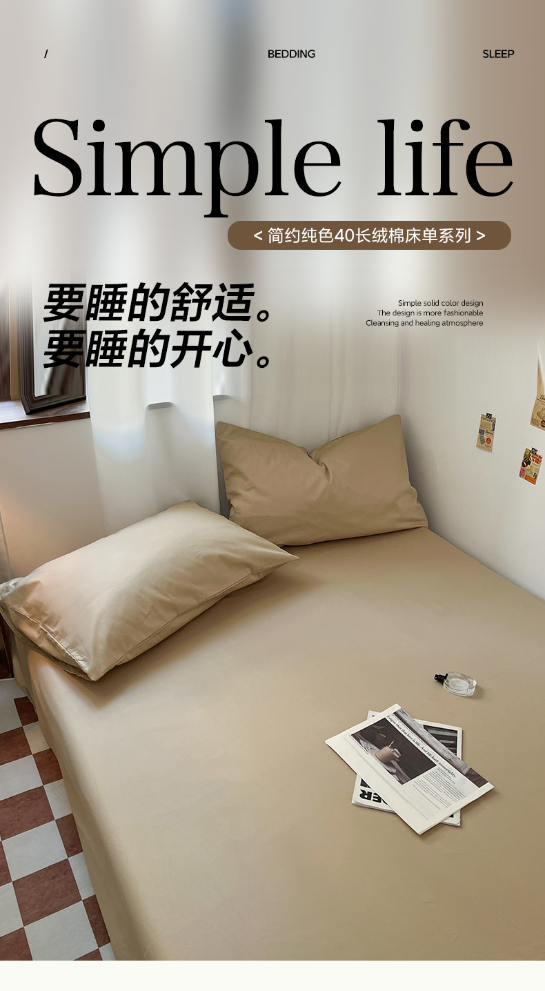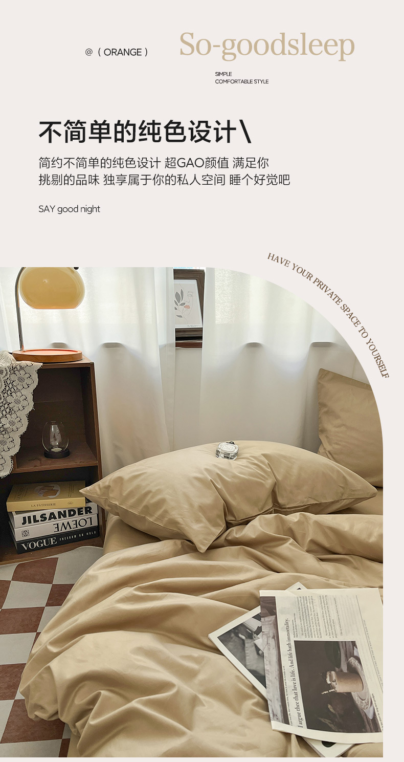 商品名称:2025新款40长绒棉ins美拉德色系纯色全棉单品四件套床笠四件套系列--单床单 奶茶色