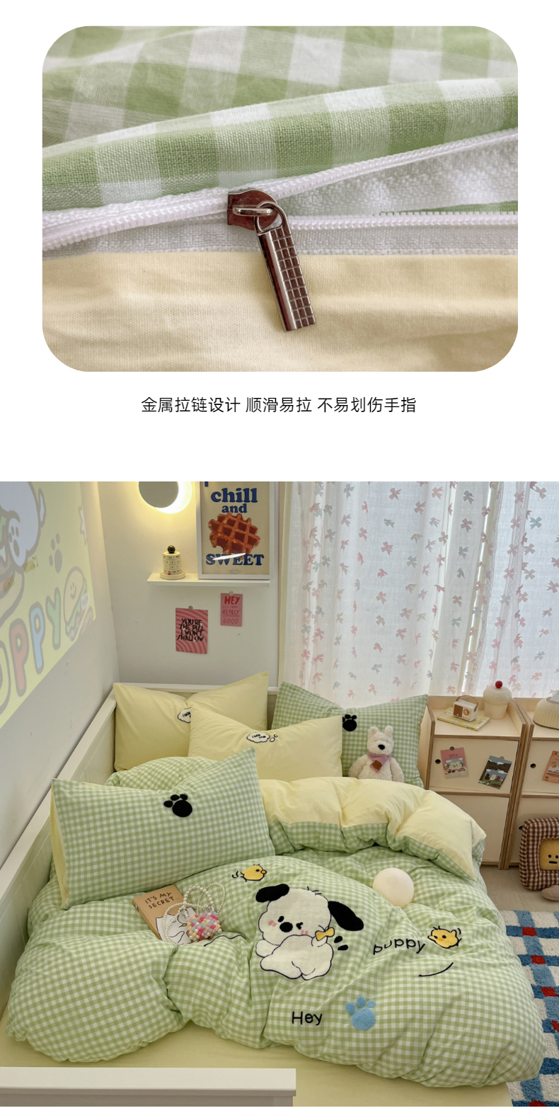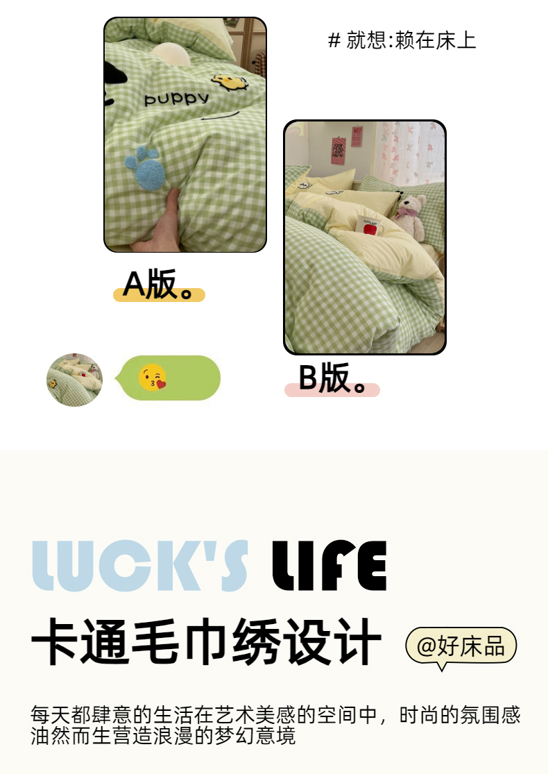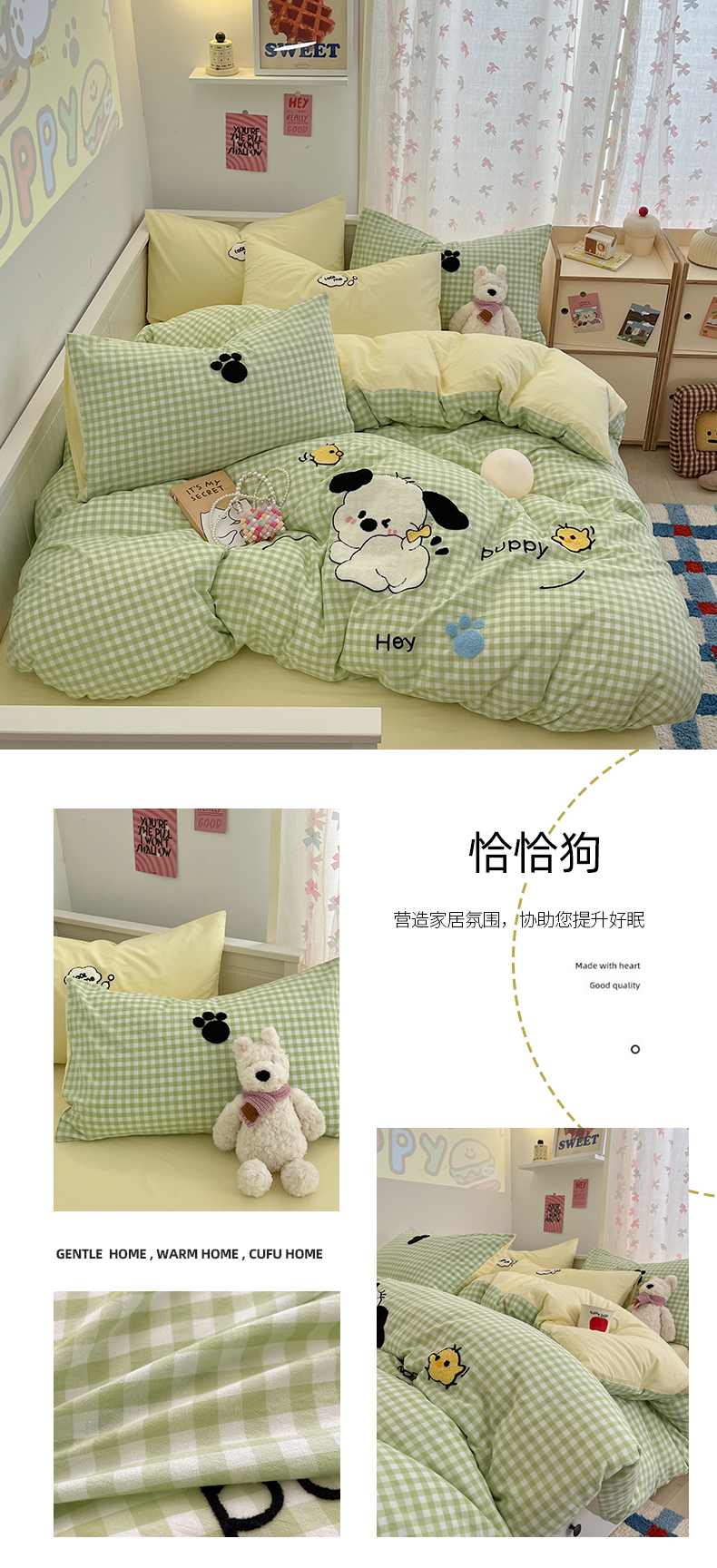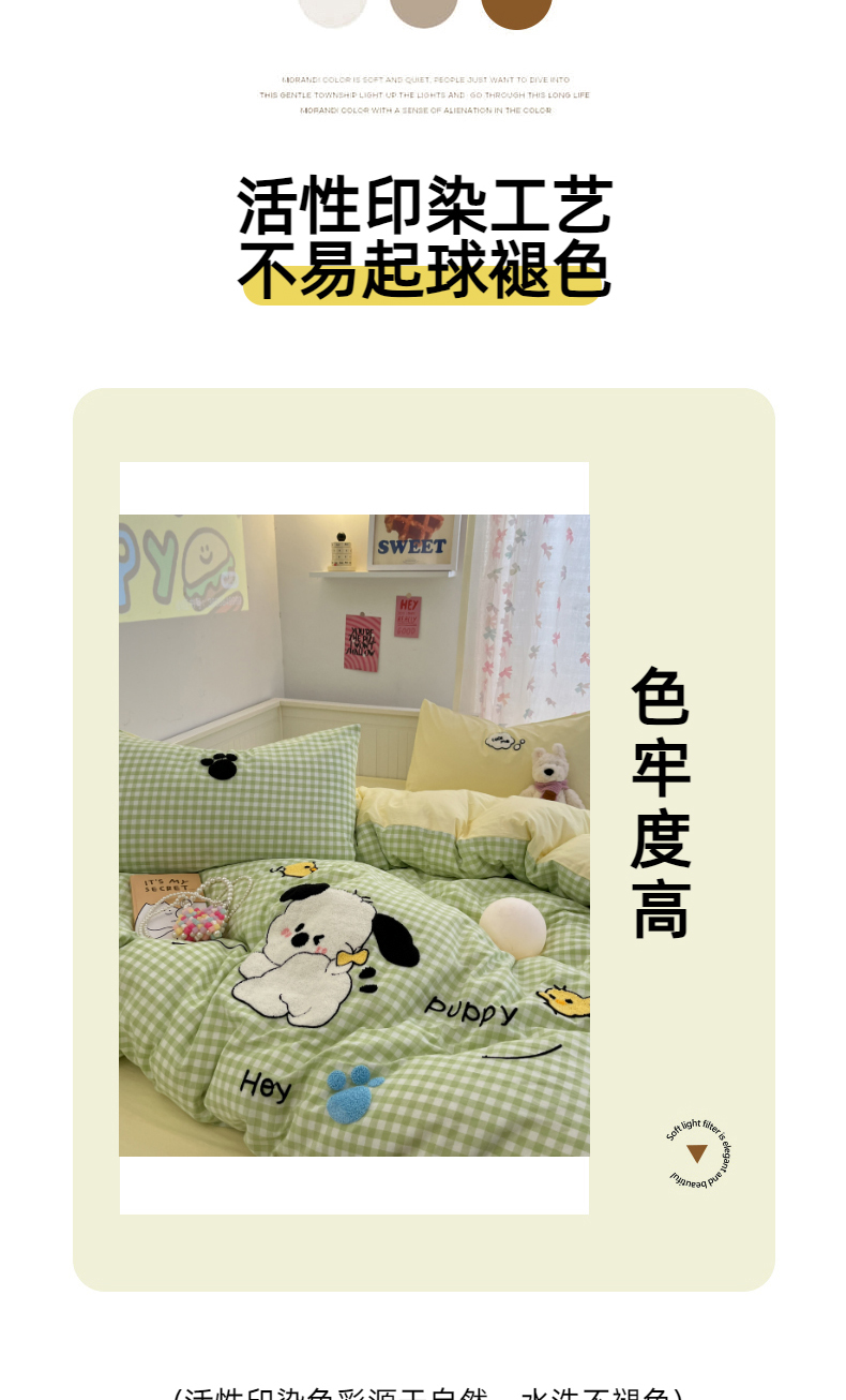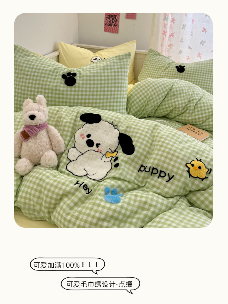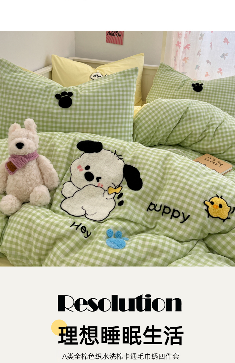 商品名称:呗旺鹿 2025新款A类全棉色织水洗棉毛巾绣系列四件套 恰恰狗