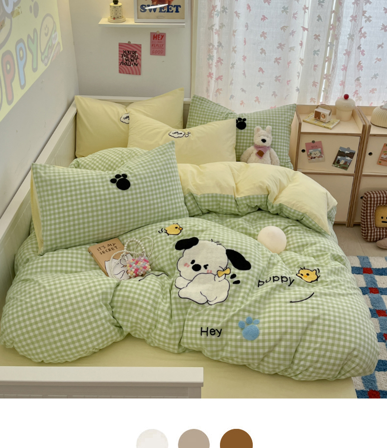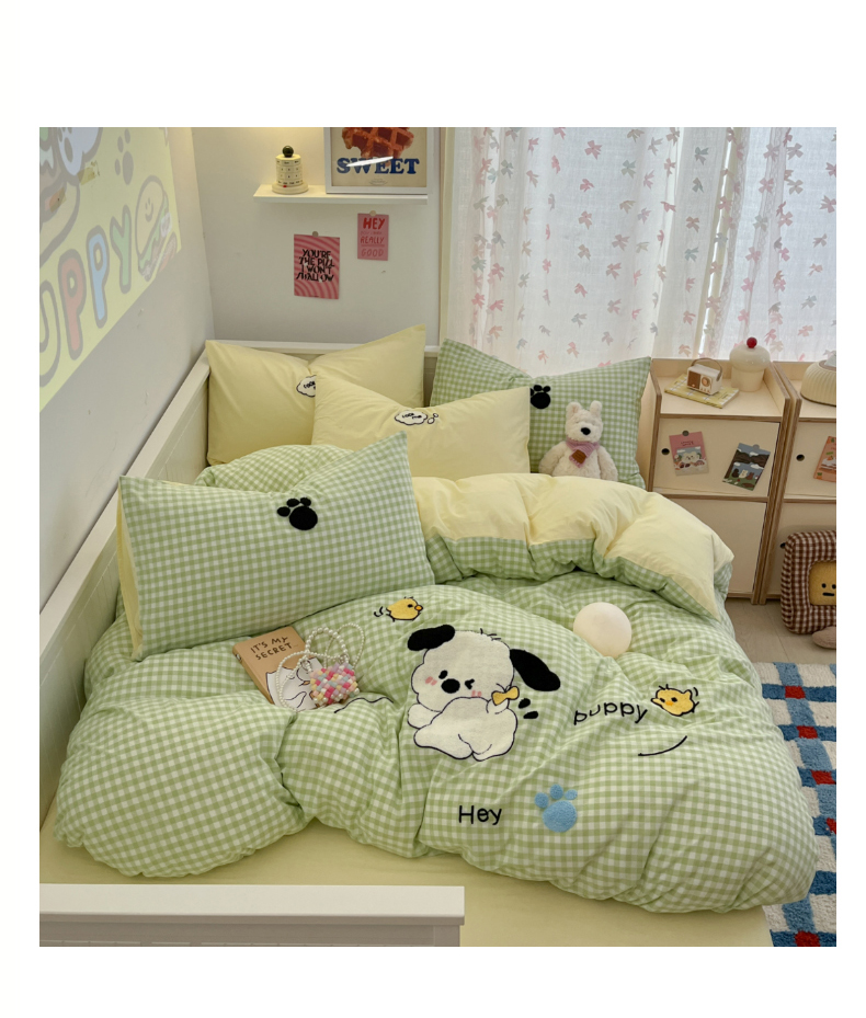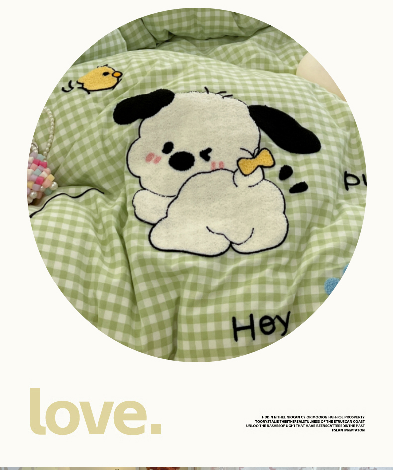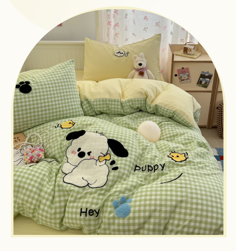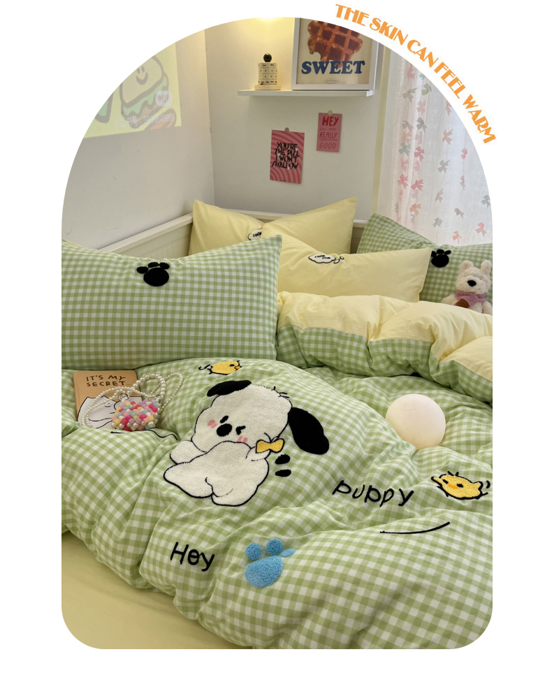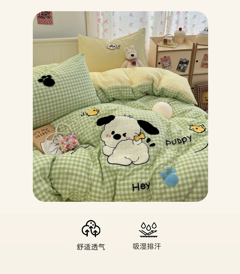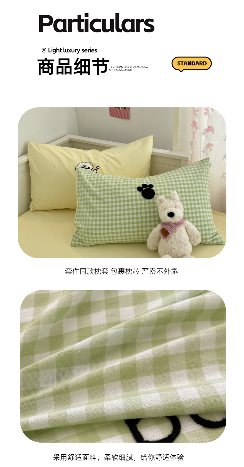 商品名称:呗旺鹿 2025新款A类全棉色织水洗棉毛巾绣系列四件套 恰恰狗