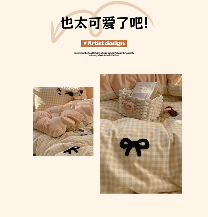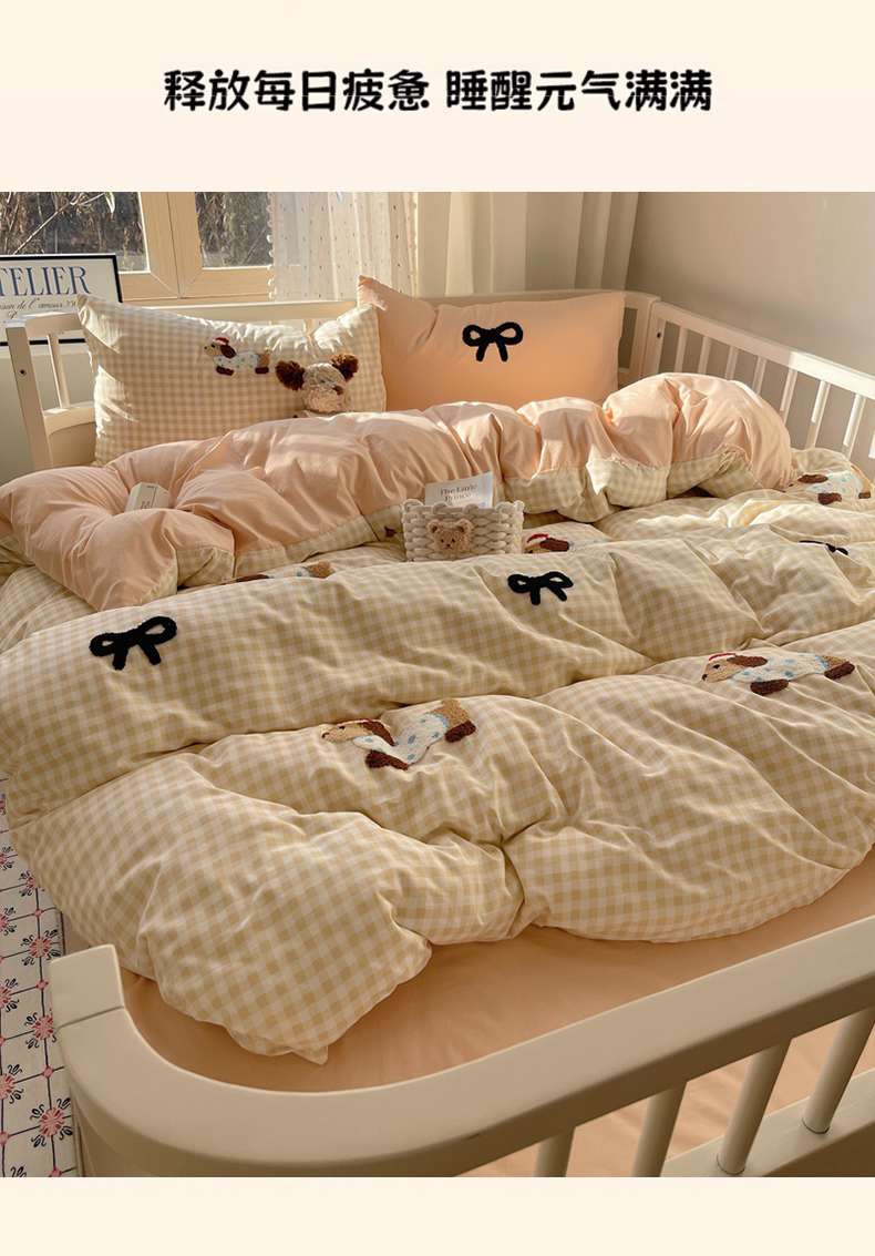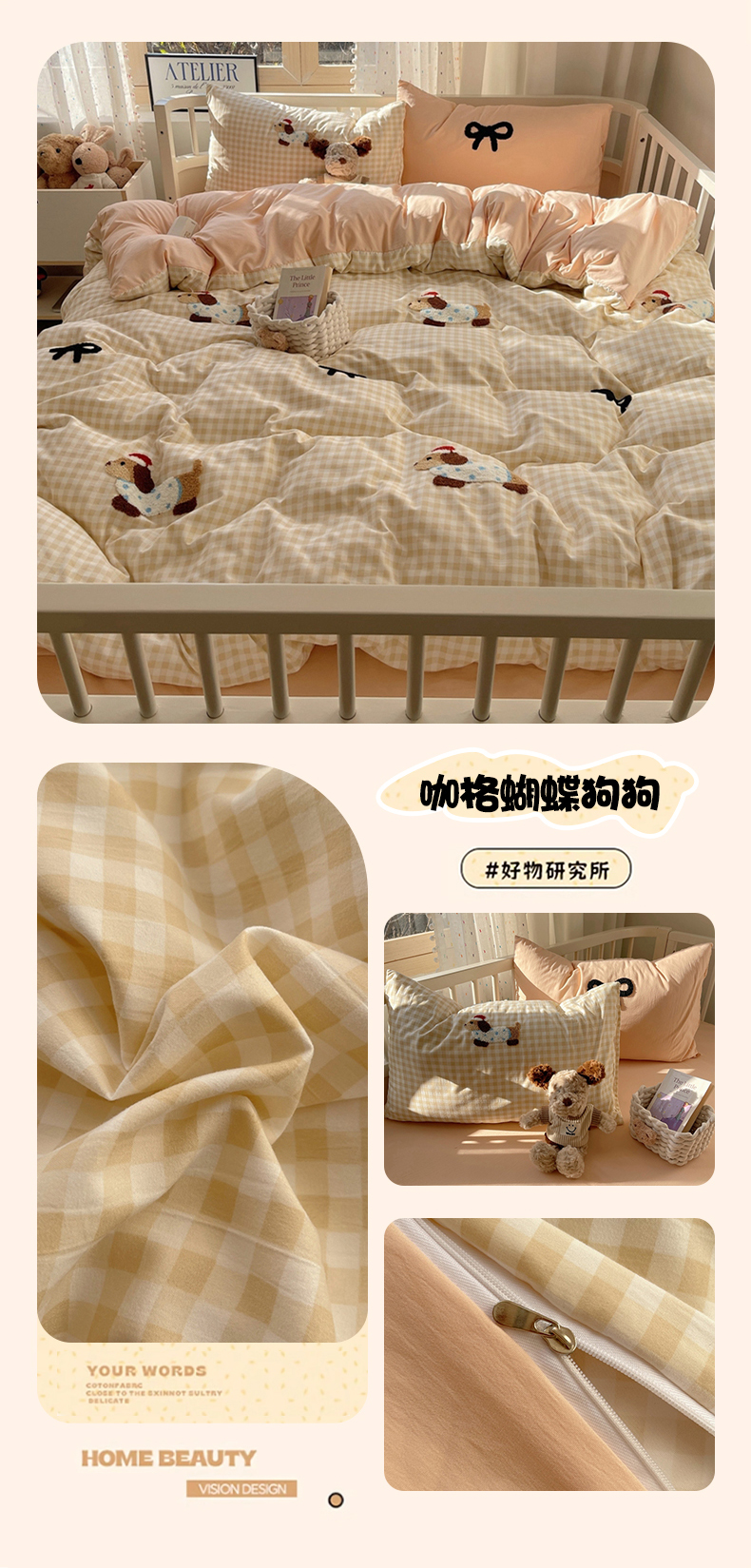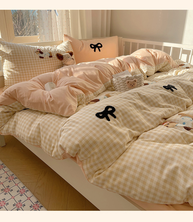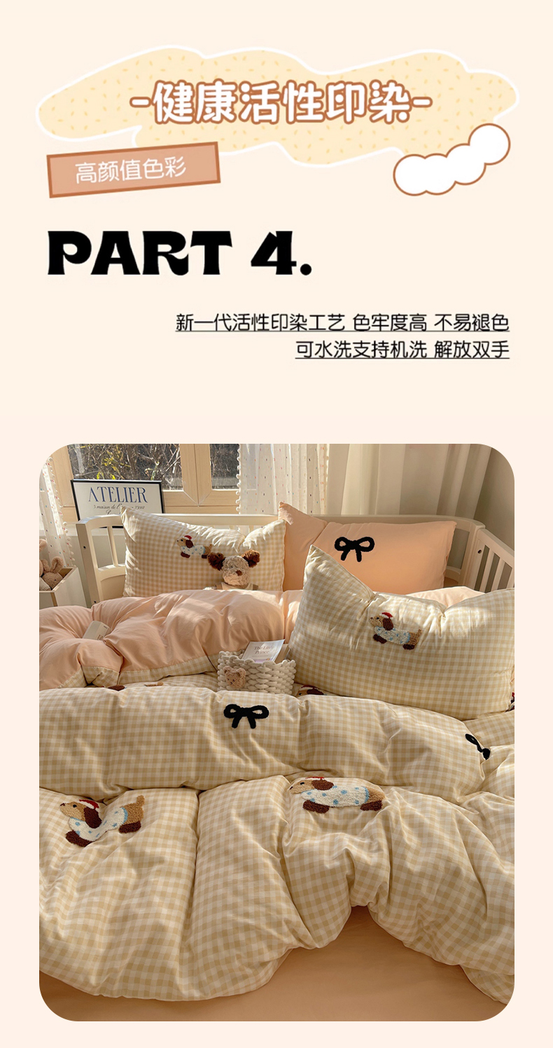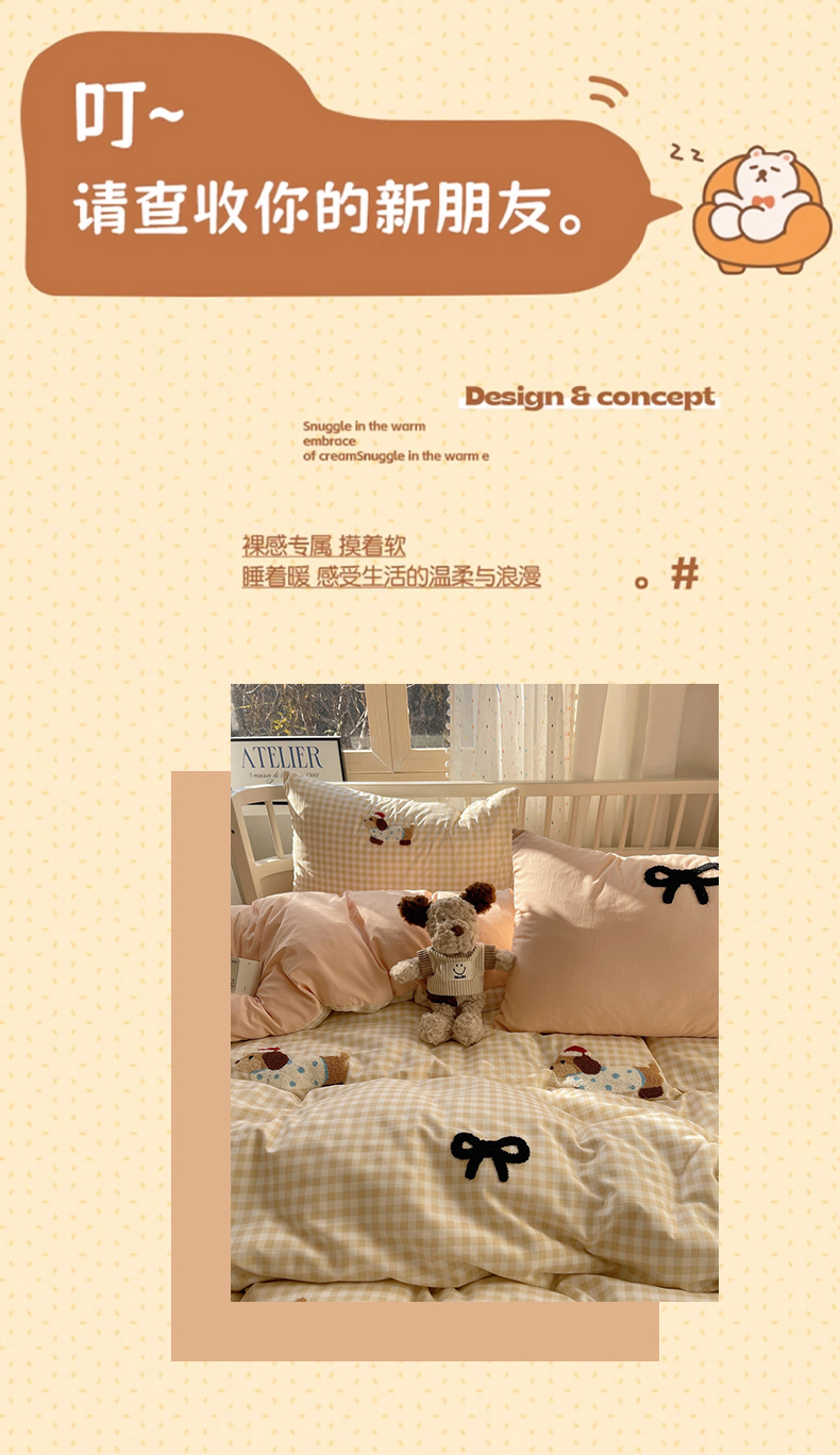 当前位置: 91家纺网 > 商品网购 > 床品套件 > 四件套 > 红嘴企鹅 2025新款水洗棉毛巾绣四件套 咖格蝴蝶结狗狗