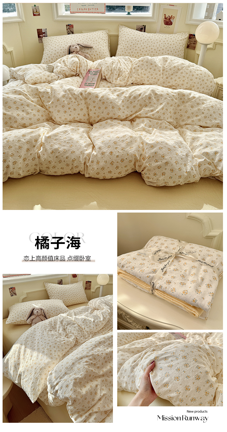 当前位置: 91家纺网 > 商品网购 > 床品套件 > 四件套 > 双层纱四件套 > 罗亿家纺 2025新款云感提花双层纱裸睡四件套 橘子海