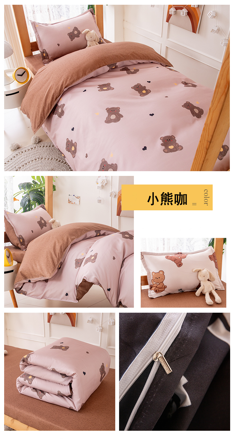 当前位置: 91家纺网 > 商品网购 > 床品套件 > 四件套 > 其它四件套 > 乐居坊 2025新款柔软亲肤印花四件套宿舍床 小熊咖