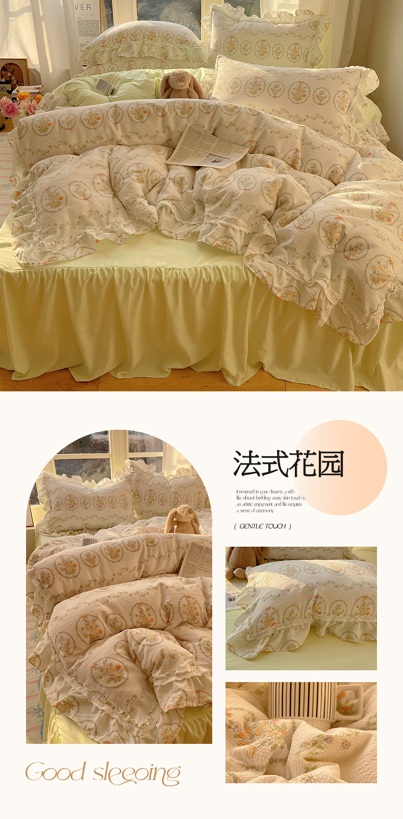 当前位置: 91家纺网 > 商品网购 > 床品套件 > 四件套 > 其它四件套 > 轻奢坊 2025新款法式泡泡棉床裙款四件套 法式花园