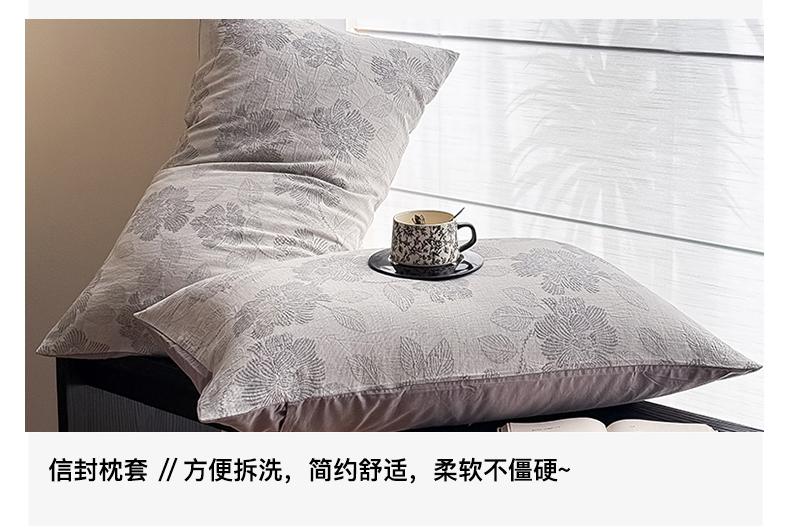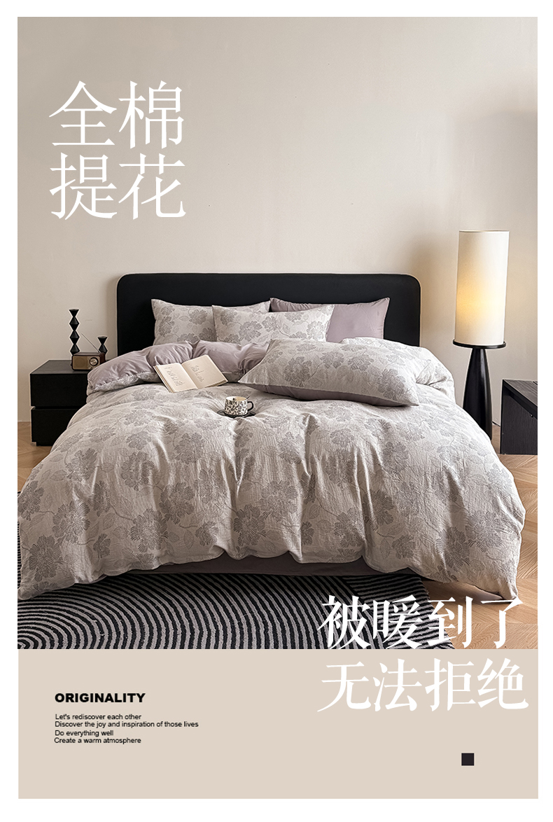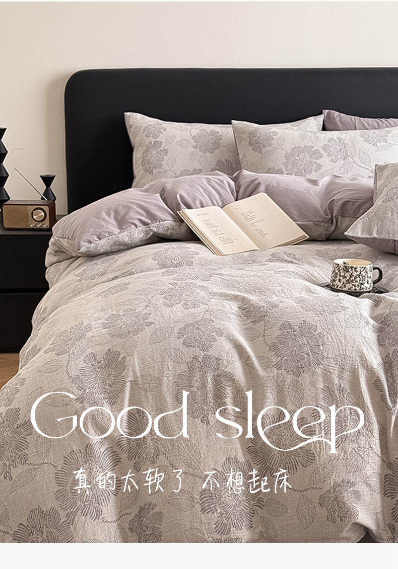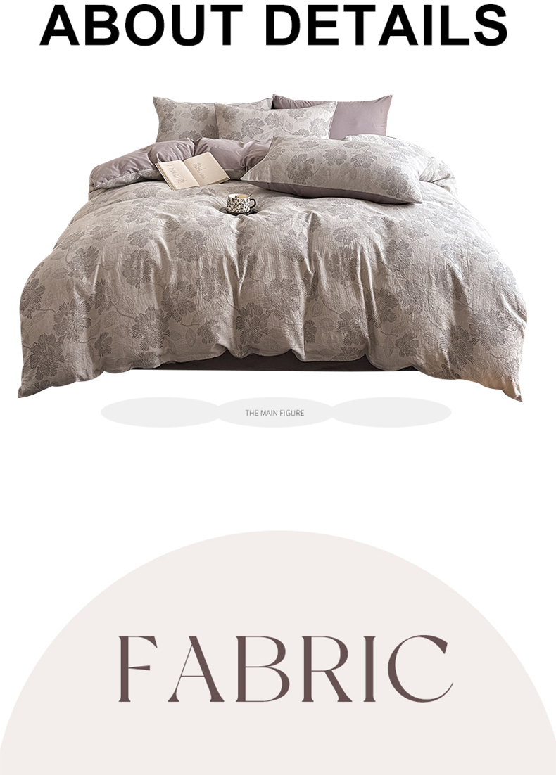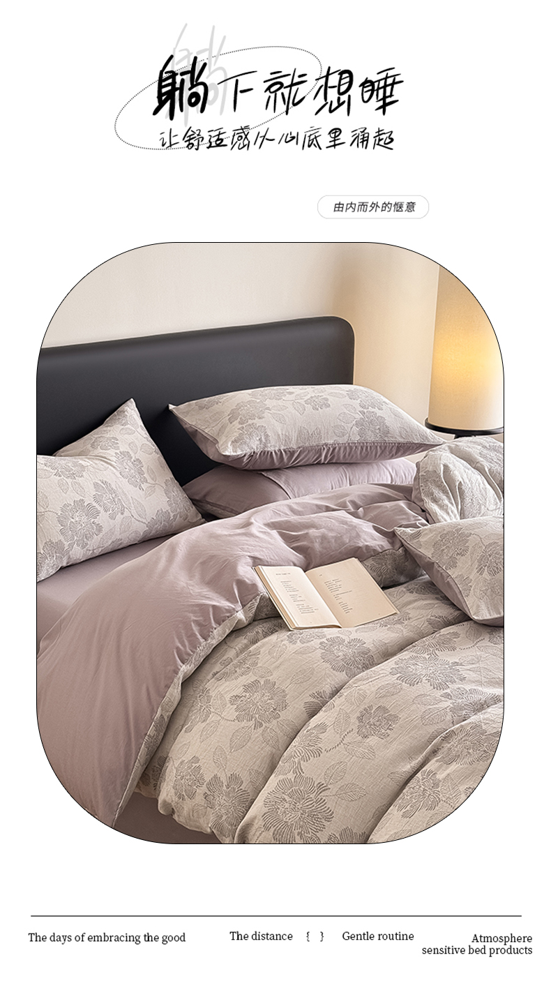 商品名称:水云缦 2025新款水云缦全棉三层纱色织大提花四件套 花影悦动-灰