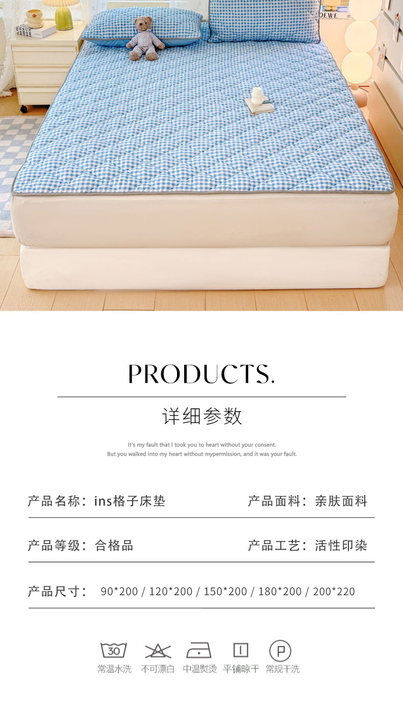 当前位置: 91家纺网 > 商品网购 > 床垫/床褥 > 普通床垫 > 麒东家纺 2025年新款ins春夏格子床垫 小蓝格