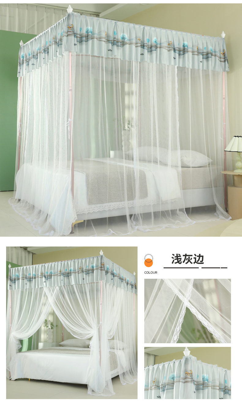 当前位置: 91家纺网 > 商品网购 > 床上用品 > 蚊帐 > 宫廷蚊帐 > 海虹蚊帐 2025新款2505款一体防尘顶落地宫廷蚊帐 浅灰边