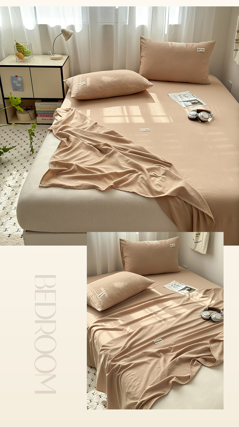 商品名称:罗亿家纺 2025新款云感提花双层纱单床笠 浅粉床笠