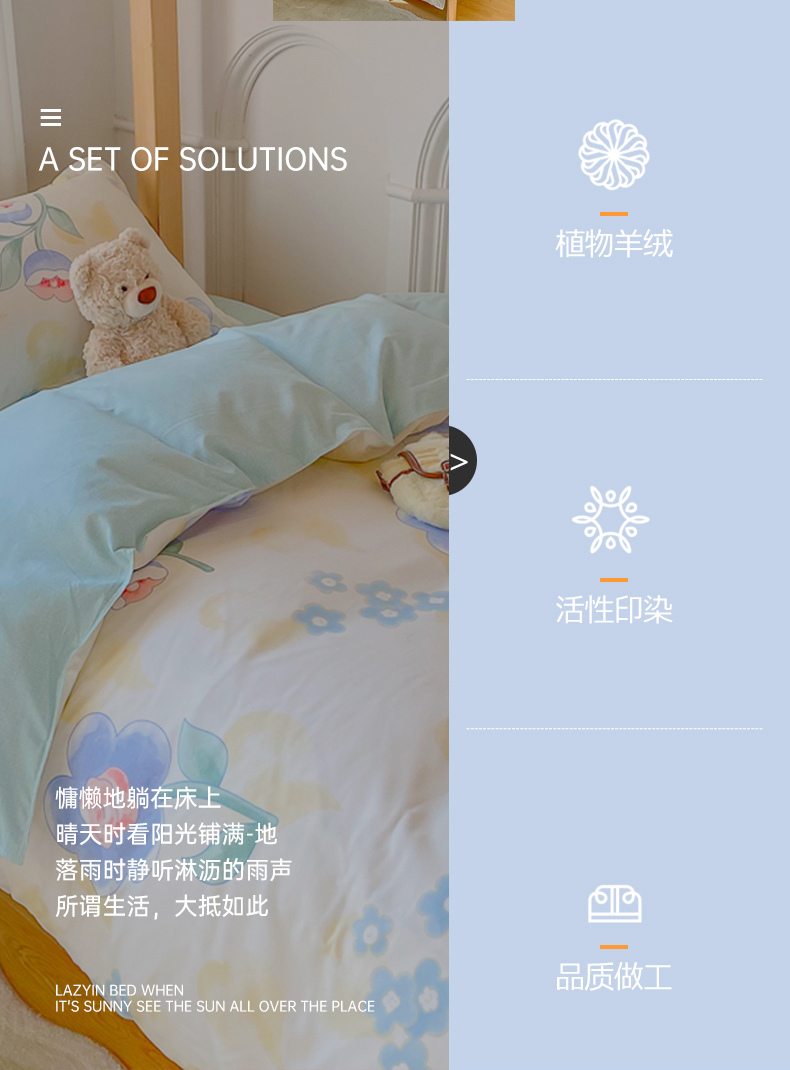 羽丝绒被六件套(三件套+ 羽丝绒被芯7斤+0.9床垫 3斤+枕芯) | ¥96.00 |