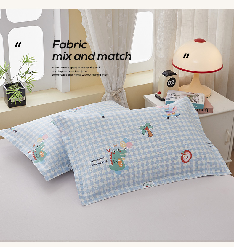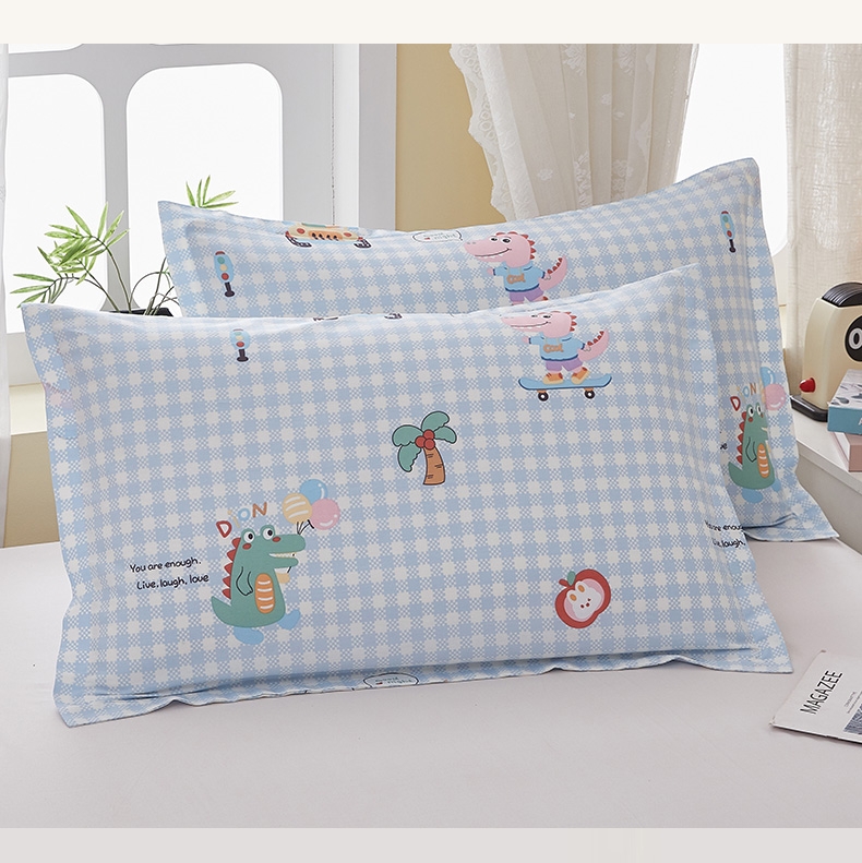 翎盈家纺 2025新款ins风小清新纯棉印花枕套 大眼恐龙-蓝