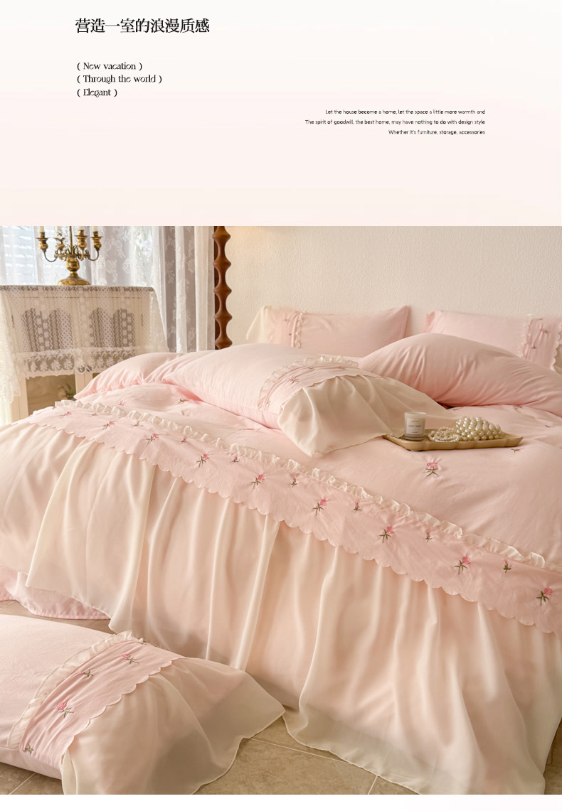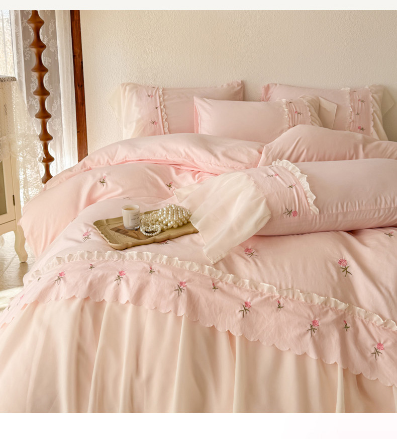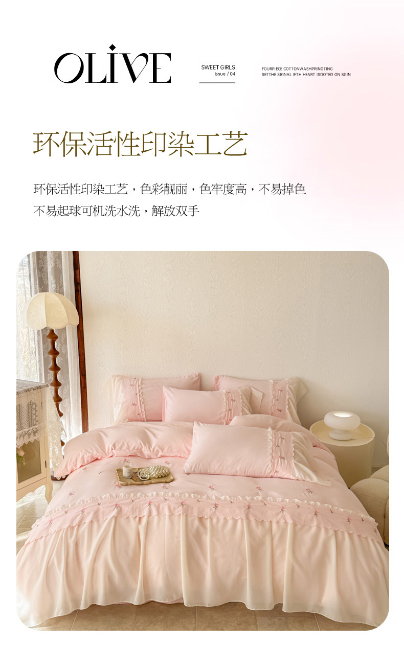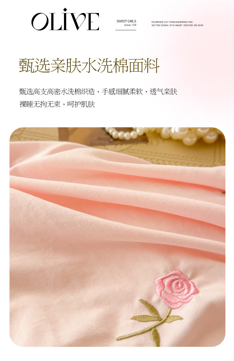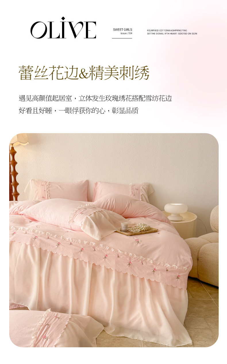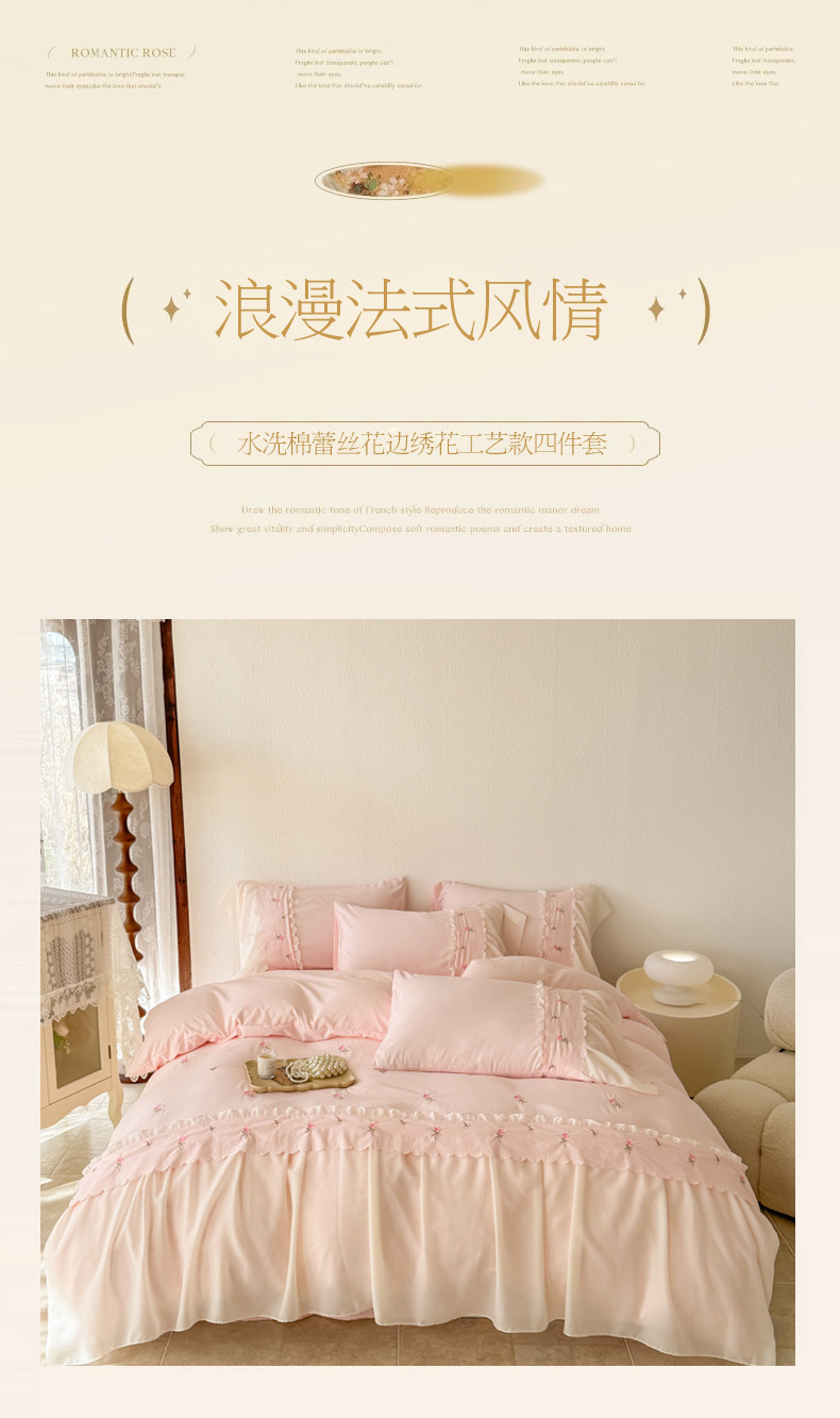 当前位置: 91家纺网 > 商品网购 > 床品套件 > 四件套 > 水洗棉四件套 > 米可 2025新款水洗棉蕾丝花边绣花工艺款四件套 玫瑰仙子-浅粉