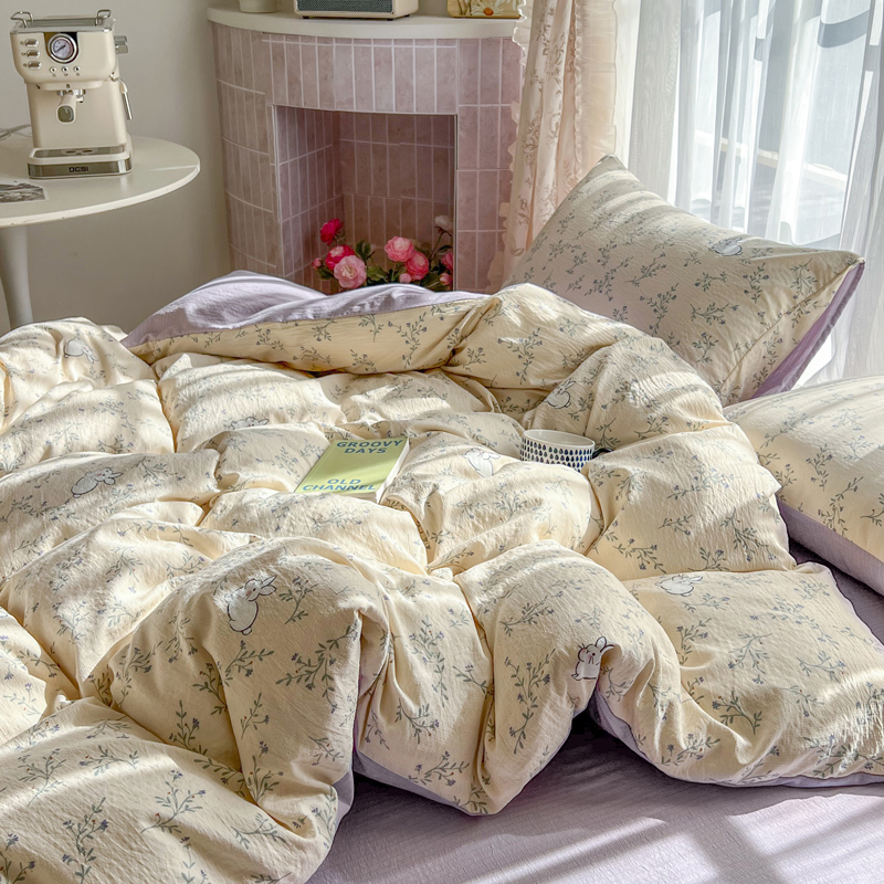 暖伊家居 2025新款A类针织双层纱四件套 栀趣,栀趣