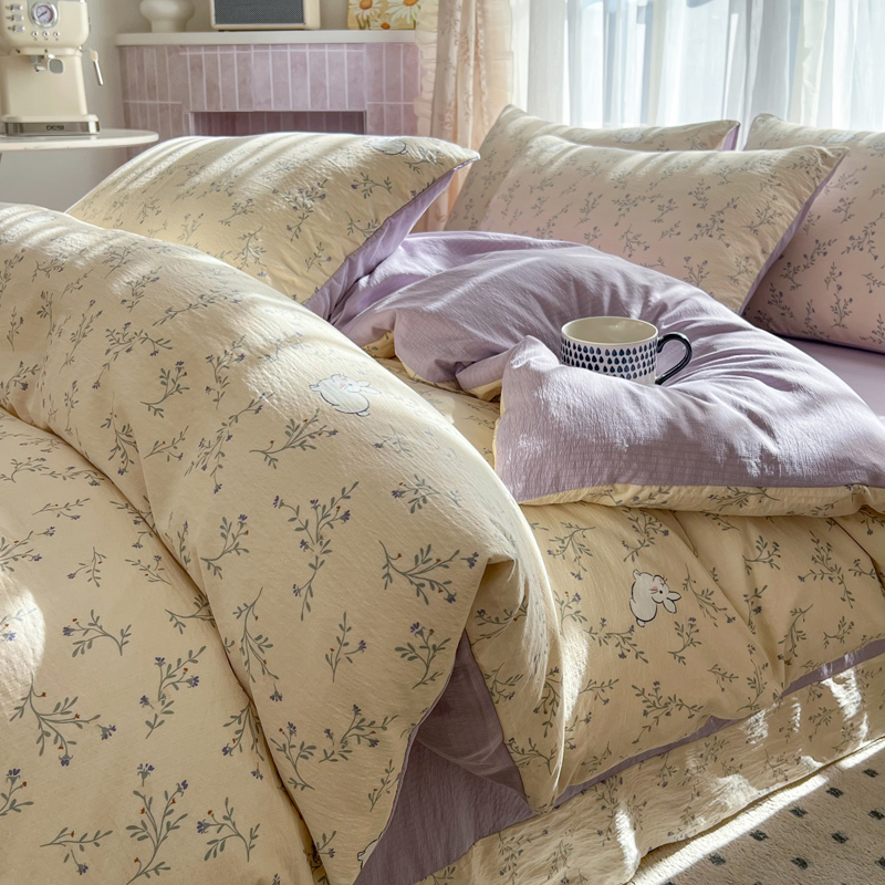 (总)暖伊家居 2025新款全棉花边 双层纱夏被 床盖四件套,咖时,奢野派,彩虹木马,云牧,浅叙,菓派,西高地,幕恋,紫陌,萌宠,花园兔,希甜