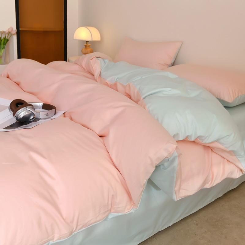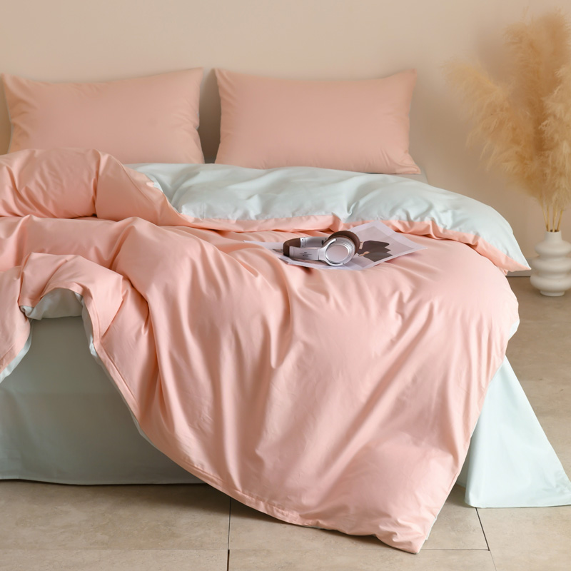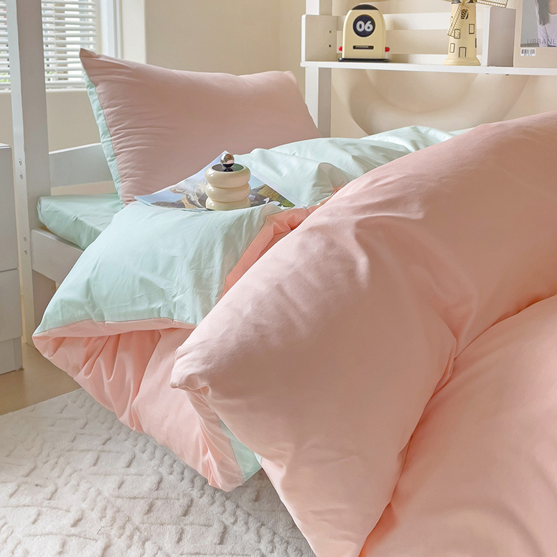 当前位置: 91家纺网 > 商品网购 > 床品套件 > 四件套 > 全棉普通四件套 > 泽西家纺2025新款A类全棉双拼纯色纯棉单被套 粉玉+绿