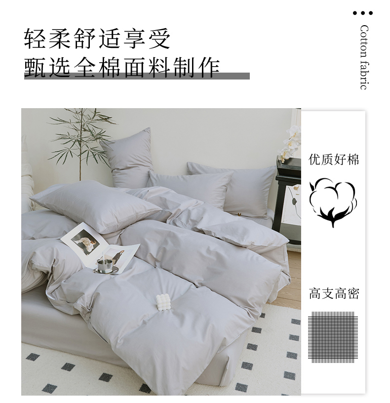 (总)期遇2025新款全棉13374纯色四件套,粉玉,海棠红,幻影灰,橘黄,卡其,嫩绿,苹果绿,青蓝,香芋紫,洋红
