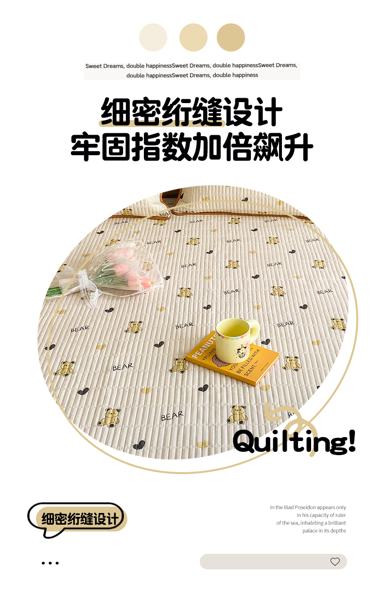 恬澳家纺 2025新款泡泡棉夹棉印花床护垫-场景二 卡洛-甜心草莓,卡洛-甜心草莓