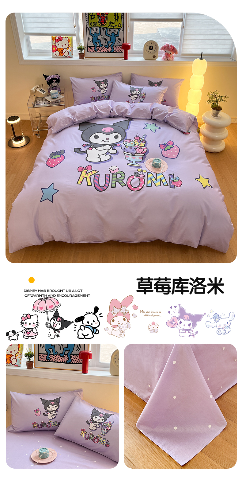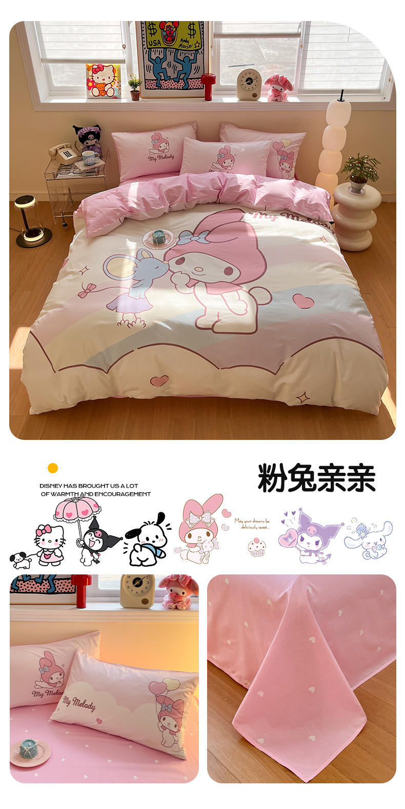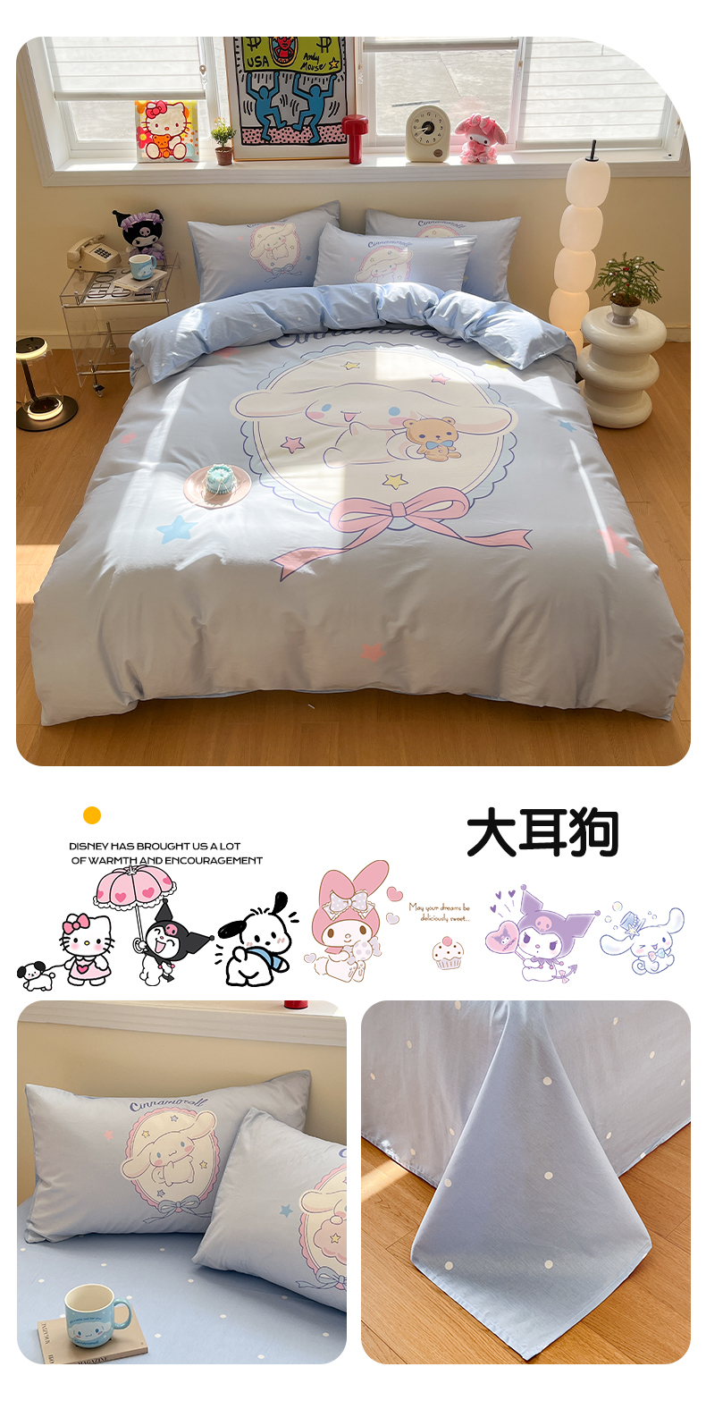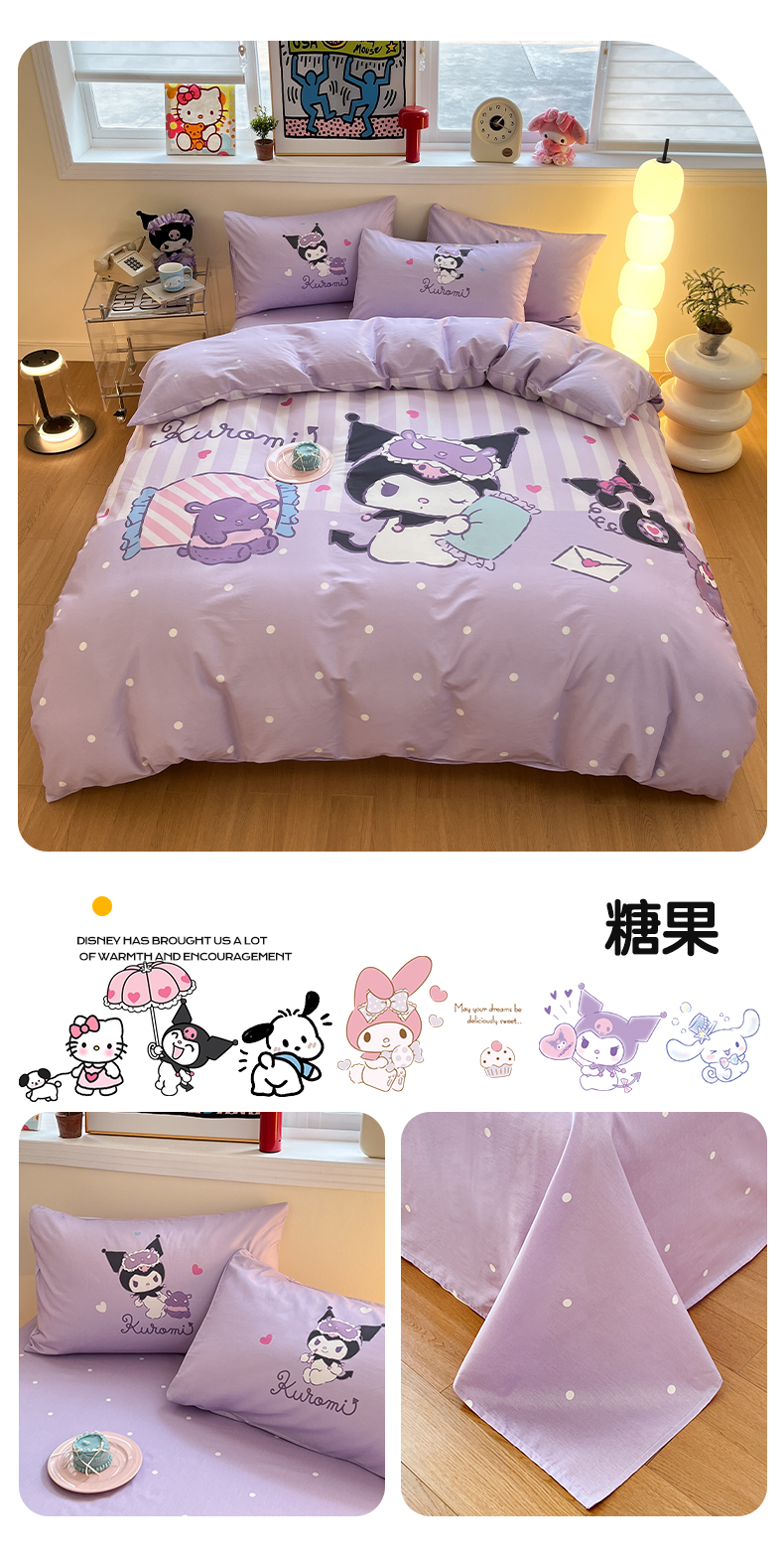 (总)蓝邻家纺 2024新款三丽鸥正版授权学生宿舍全棉印花四件套,甜甜库洛米,粉格美乐蒂,米酷粉,米酷紫,妙可乐园,牛奶大耳狗,玉桂狗
