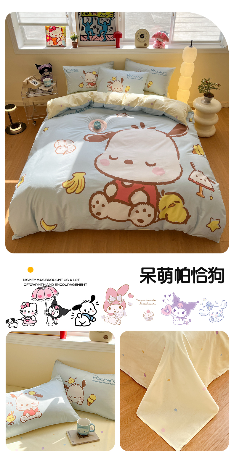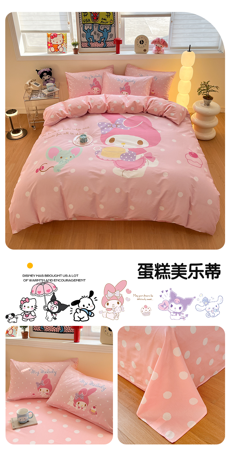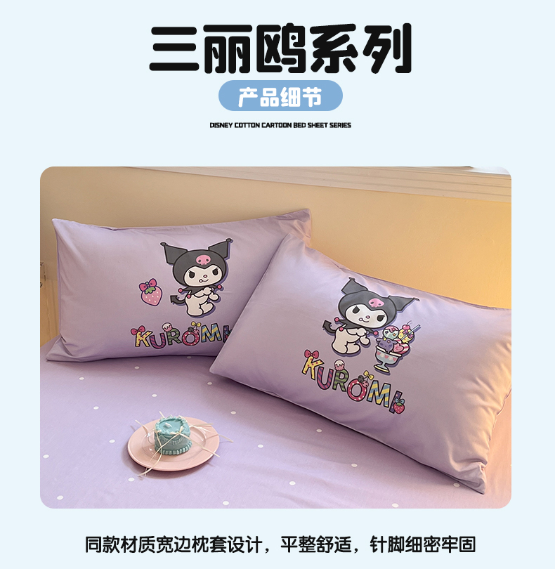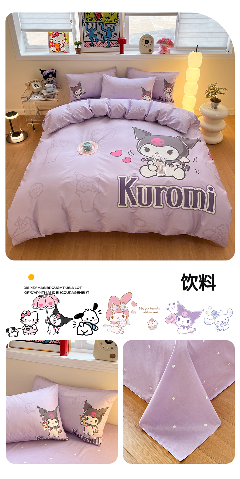 (总)蓝邻家纺 2024新款三丽鸥正版授权学生宿舍全棉印花四件套,甜甜库洛米,粉格美乐蒂,米酷粉,米酷紫,妙可乐园,牛奶大耳狗,玉桂狗