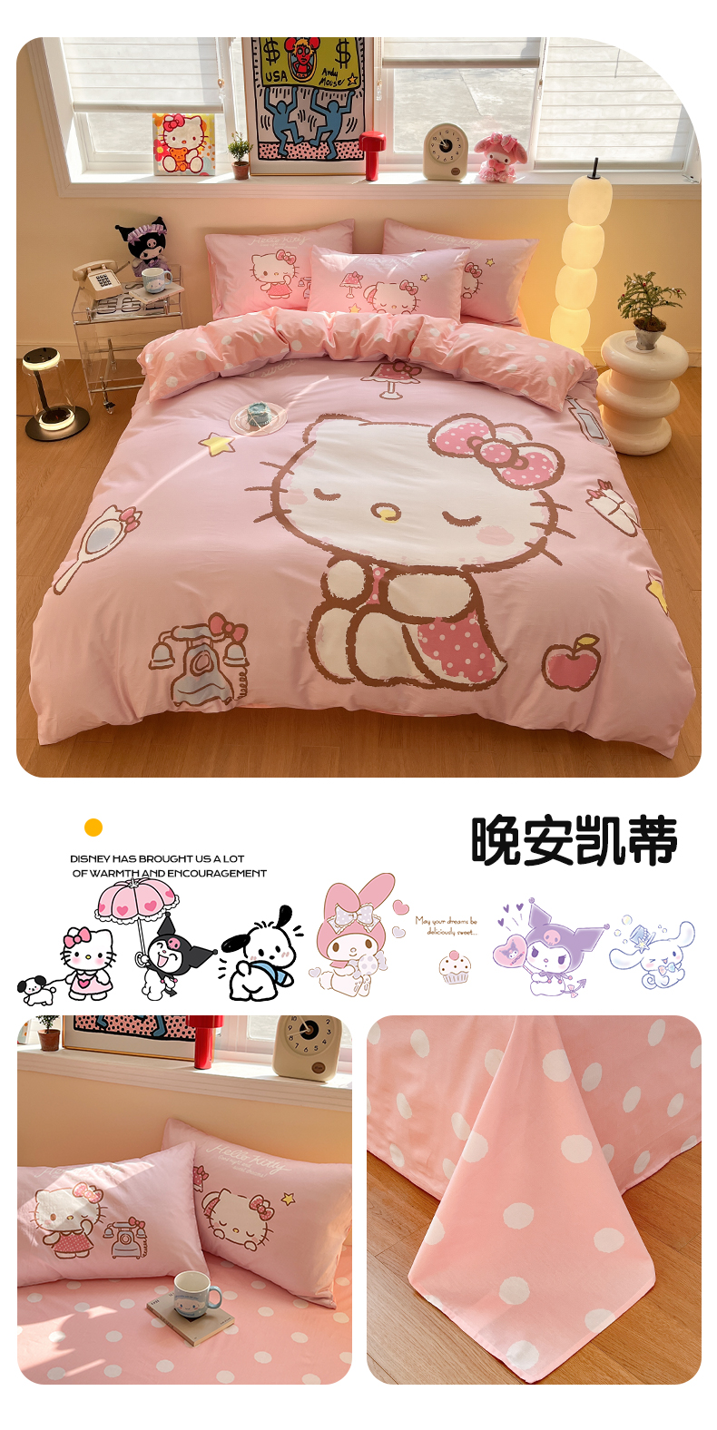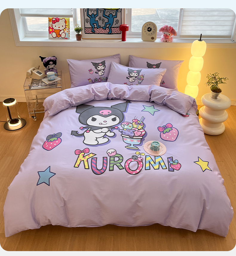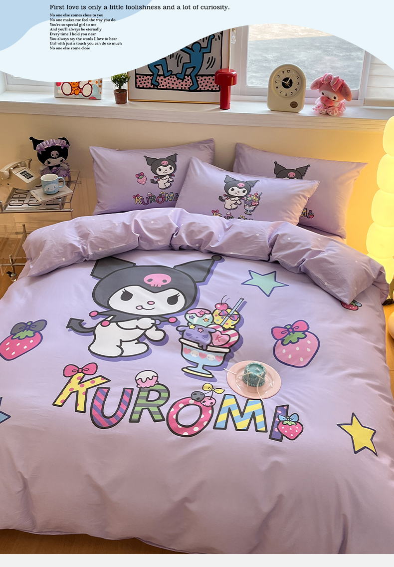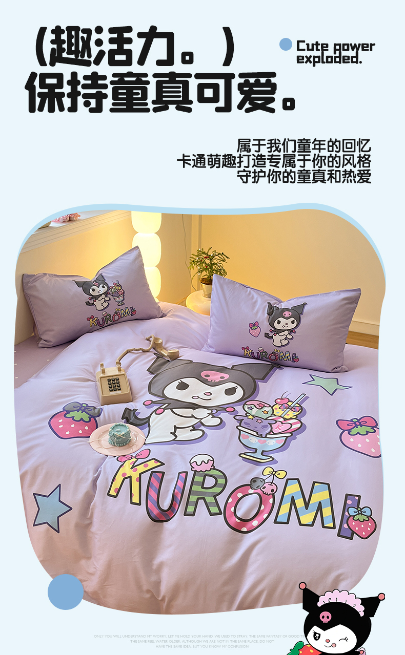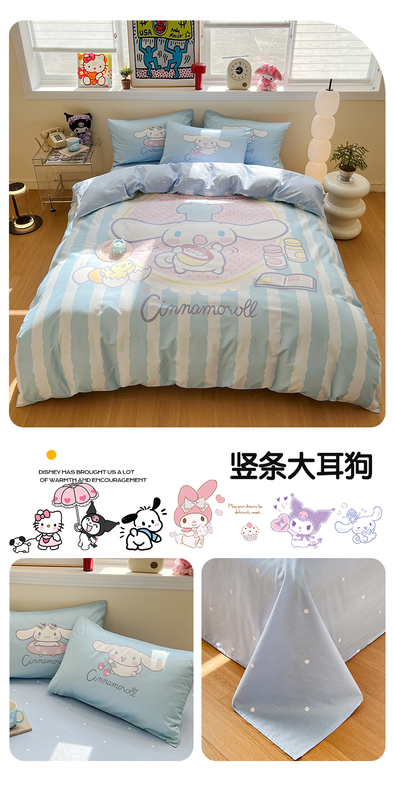 (总)蓝邻家纺 2024新款三丽鸥正版授权学生宿舍全棉印花四件套,甜甜库洛米,粉格美乐蒂,米酷粉,米酷紫,妙可乐园,牛奶大耳狗,玉桂狗