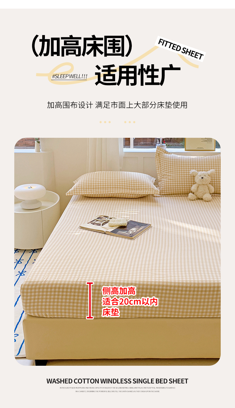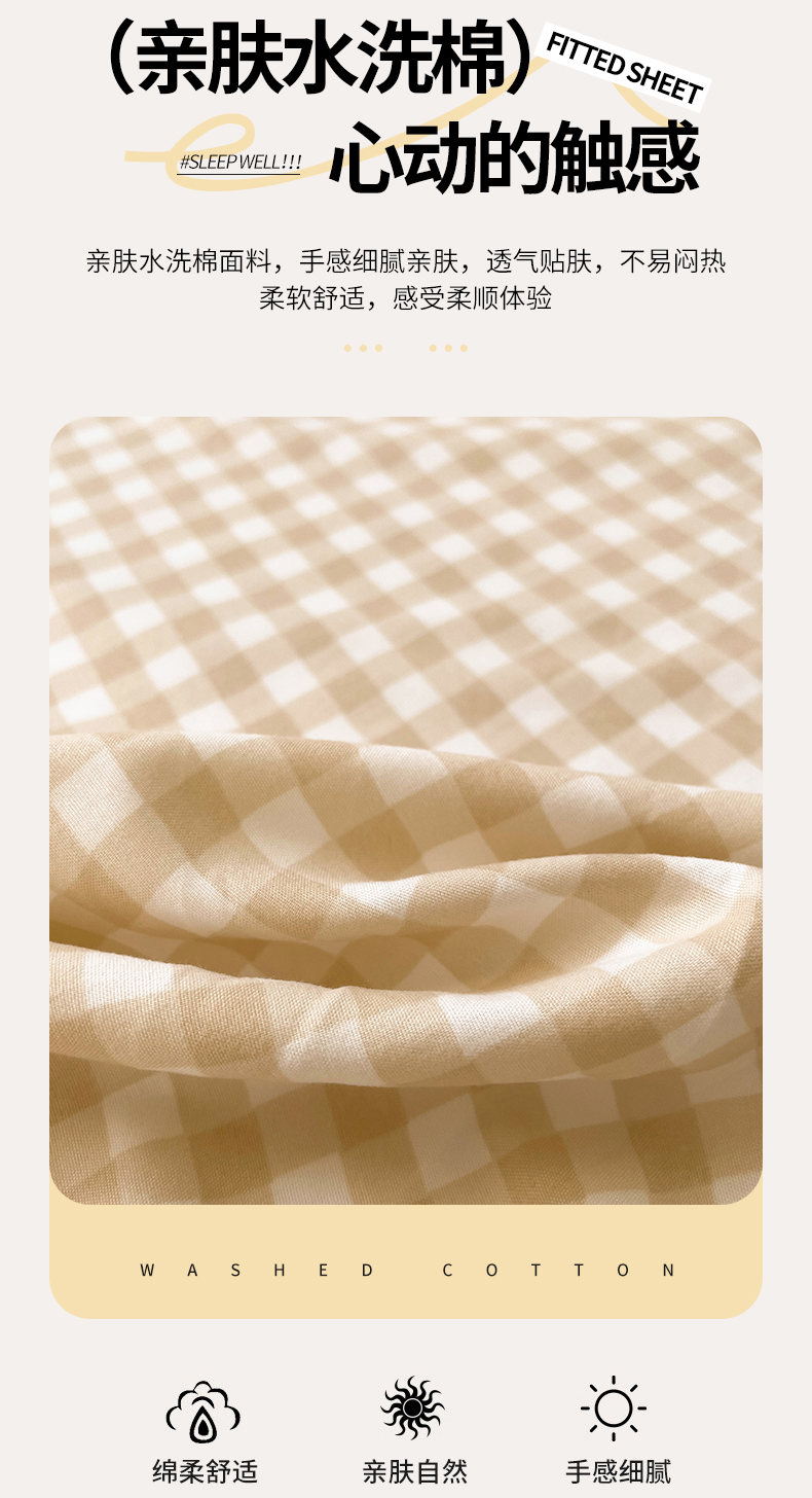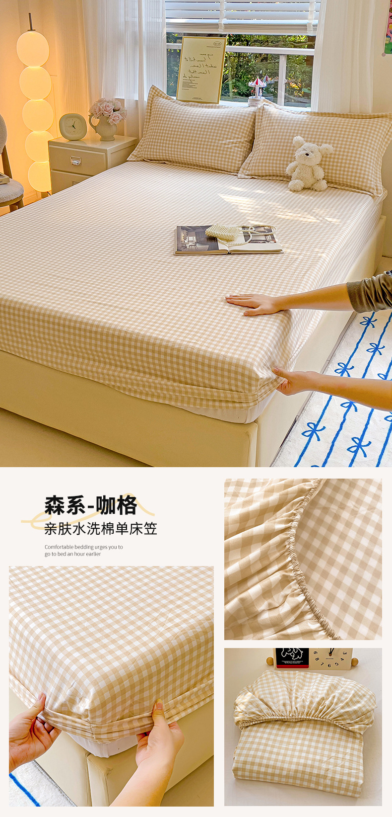 恬澳家纺 2025新款森系水洗棉无印风单床笠场景二 森系-咖格