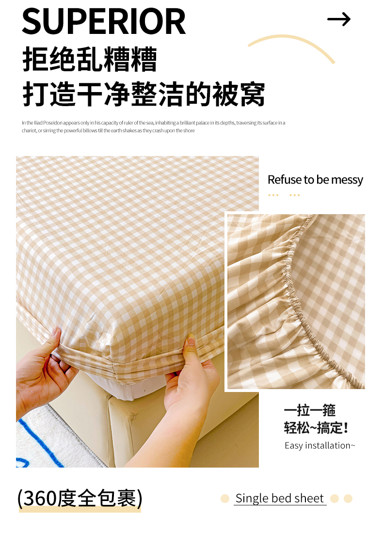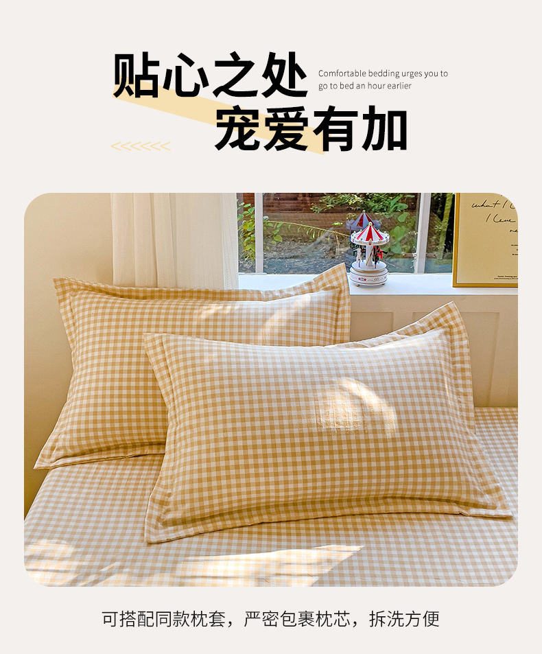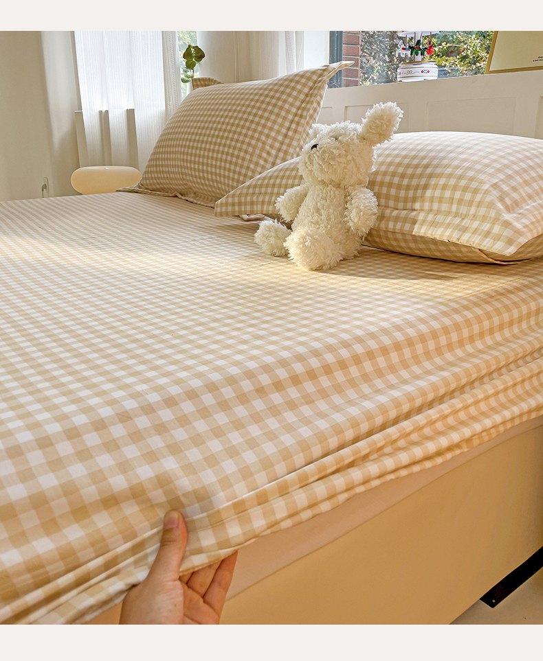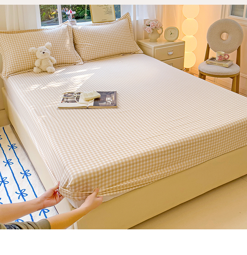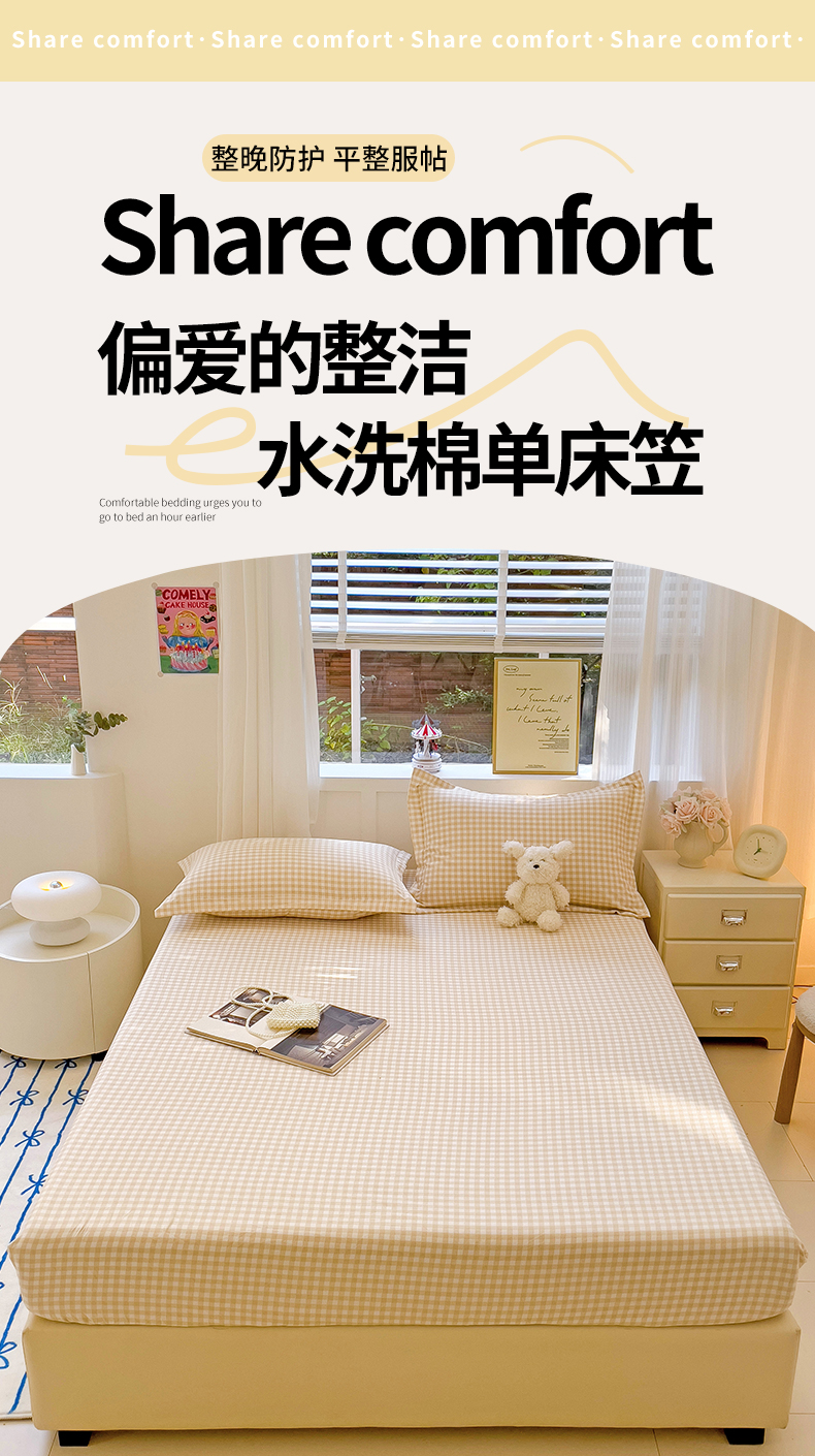 恬澳家纺 2025新款森系水洗棉无印风单床笠场景二 森系-咖格