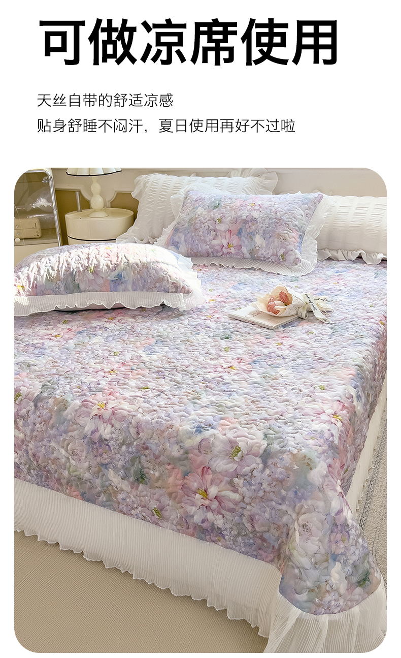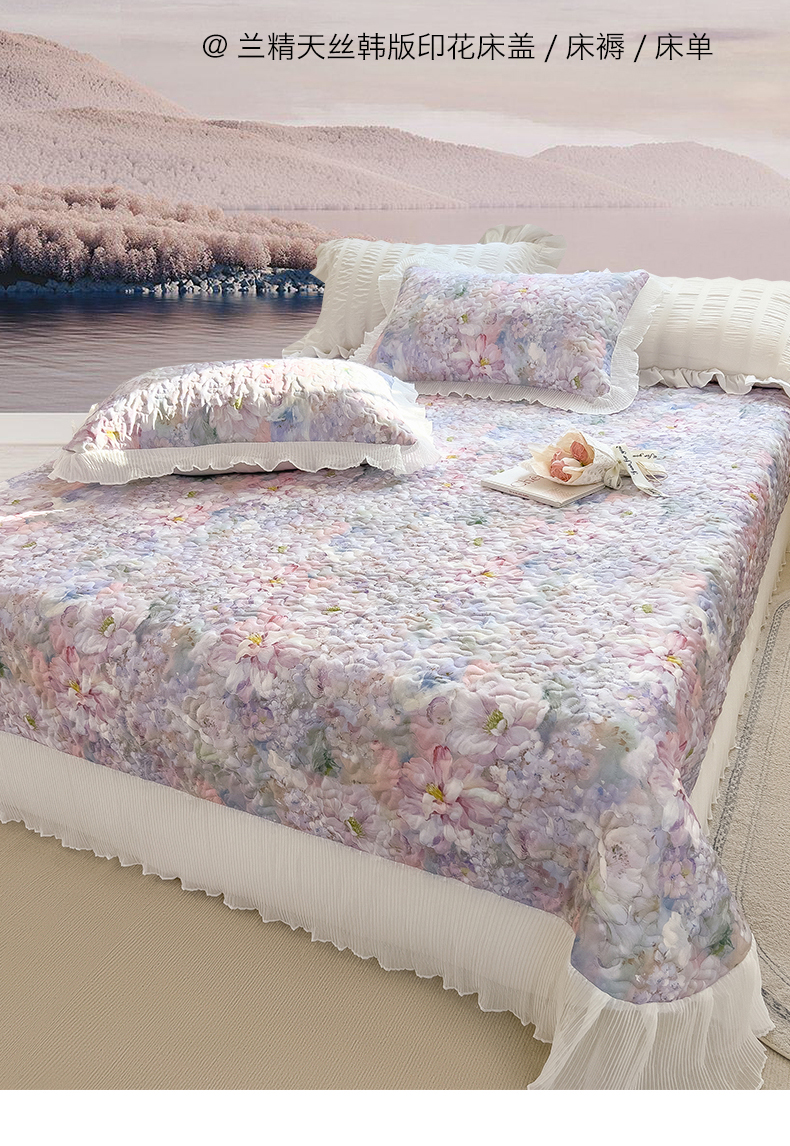 (总)迪梦思家纺 2025新款A类莱赛尔兰精天丝韩版印花床盖床裙床褥夏被,床盖-春晓,床盖-芬芳,床盖-花香,床盖-蓝蝶,床盖-绿意,床盖-梦境,床盖-盛开,床盖-漪梦,床盖-油画
