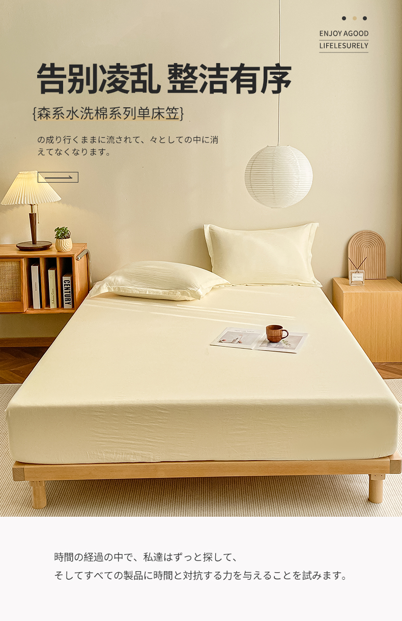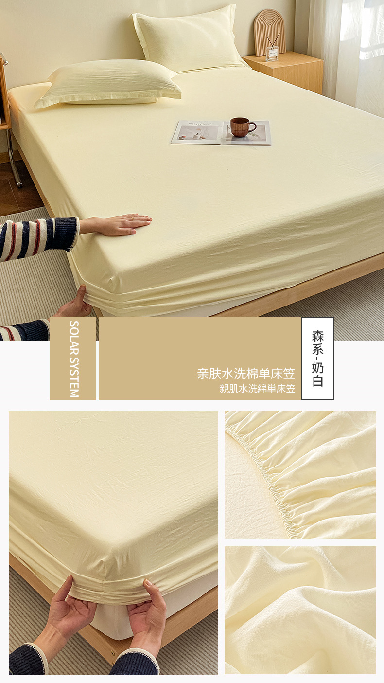 恬澳家纺 2025新款森系水洗棉无印风单床笠场景三 森系-奶白