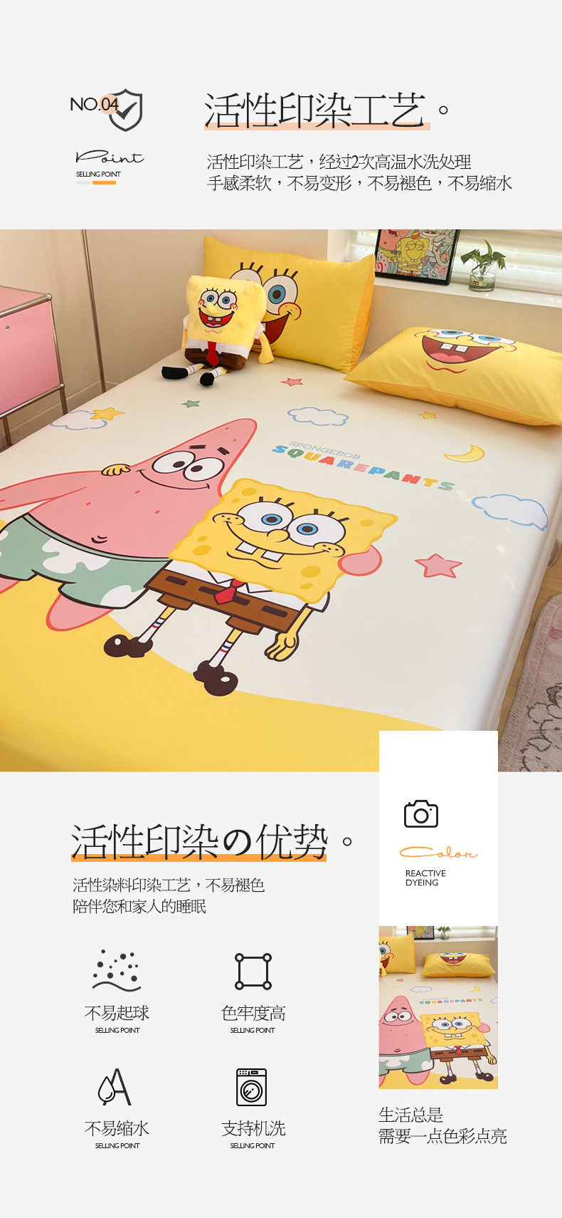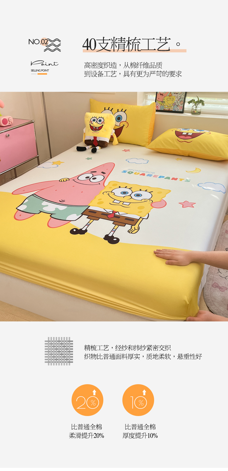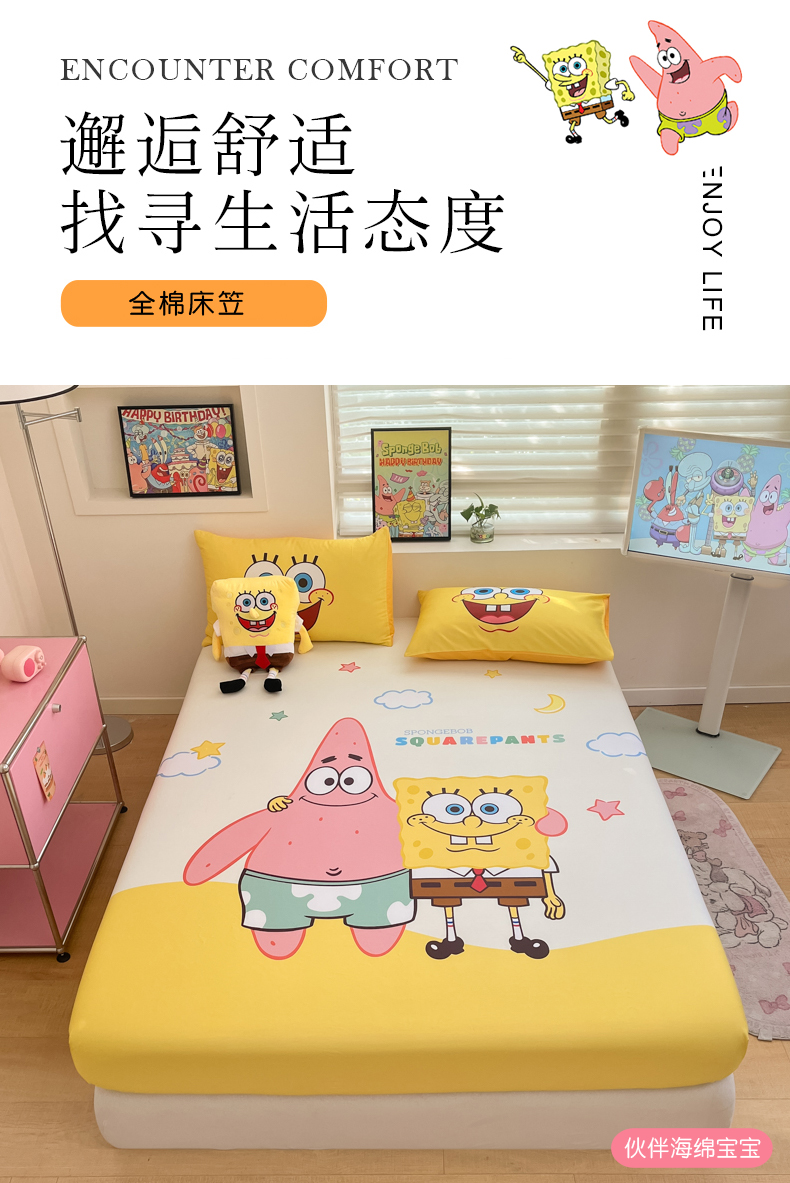 金爱家2025新款全棉大版单品-床笠 棉单品-伙伴海绵宝宝